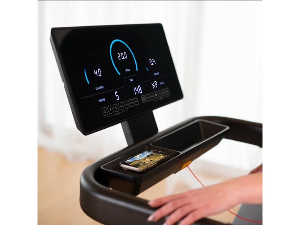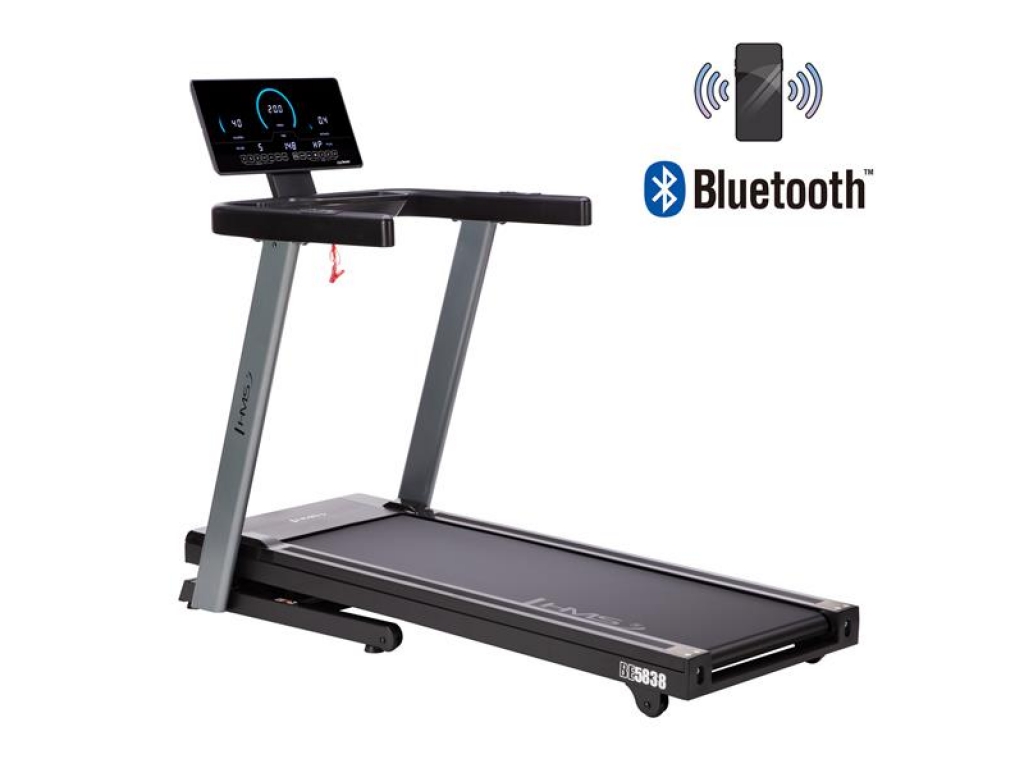 Bežecký pás BE5838 je vybavený rozhraním Bluetooth pre pripojenie k tréningovým aplikáciám (Kinomap, Zwift, AnyRun) a vstavanými reproduktormi pre prehrávanie hudby. Počúvanie obľúbených skladieb alebo podcastov pri cvičení bude odteraz neuveriteľne jednoduché! Ide o inovatívne riešenia, ktoré vám umožnia užiť si každý okamih na bežeckom páse.