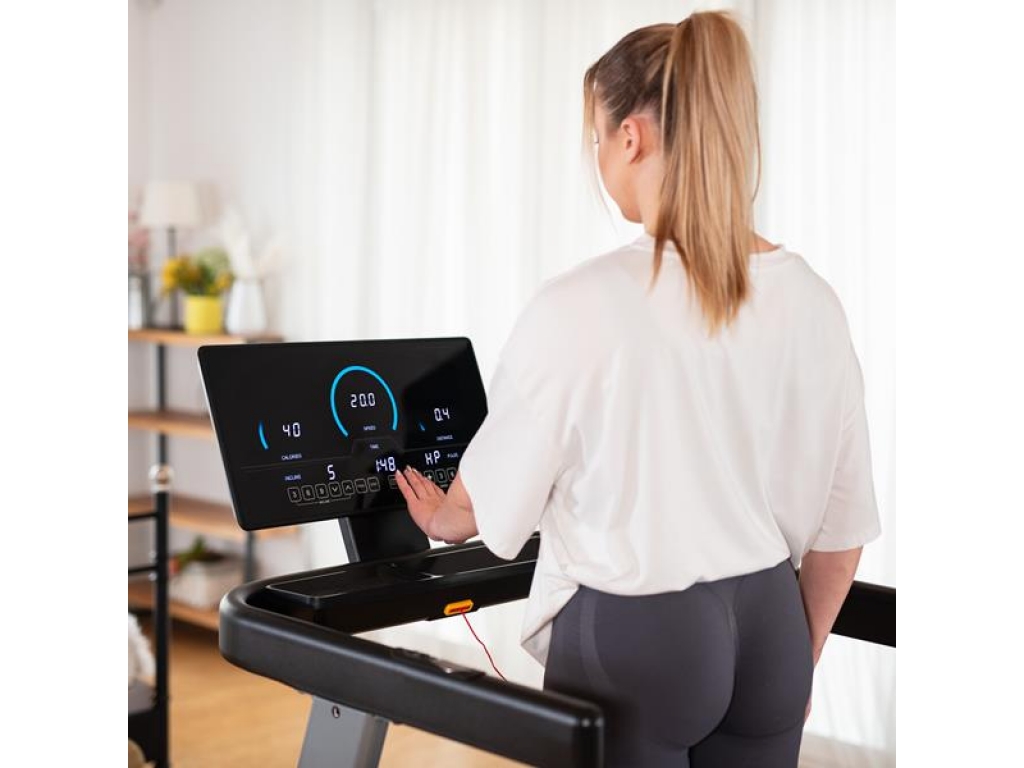 Bežecký pás BE5838 je vybavený počítačom s LED displejom a ponúka 36 vstavaných tréningových programov, 3 užívateľské programy a 1 manuálny program, takže si každý nájde ten svoj ideálny program. Vstavaná funkcia Body Fat (percento telesného tuku) a meranie času, vzdialenosti, rýchlosti, kalórií, pulzu pomáhajú sledovať pokroky a kontrolovať zdravotné parametre, zatiaľ čo pohodlné tlačidlá na rukovätiach umožňujú rýchle ovládanie rýchlosti a sklonu bez prerušenia cvičenia.