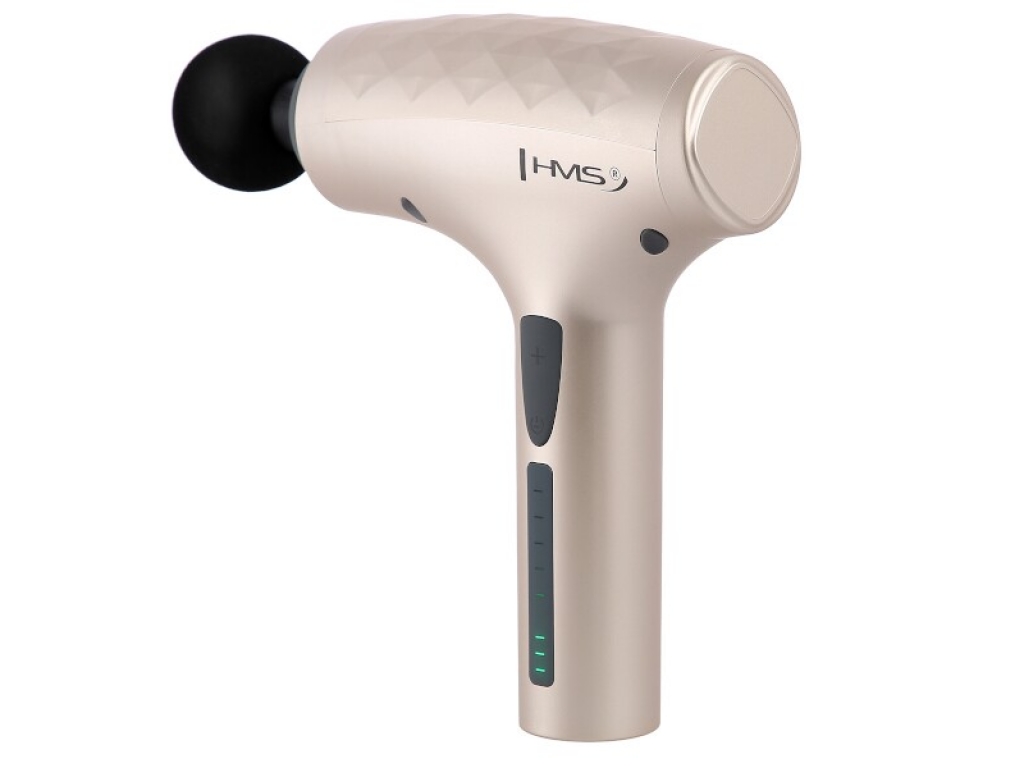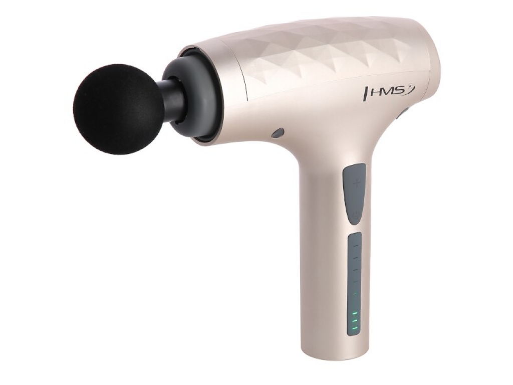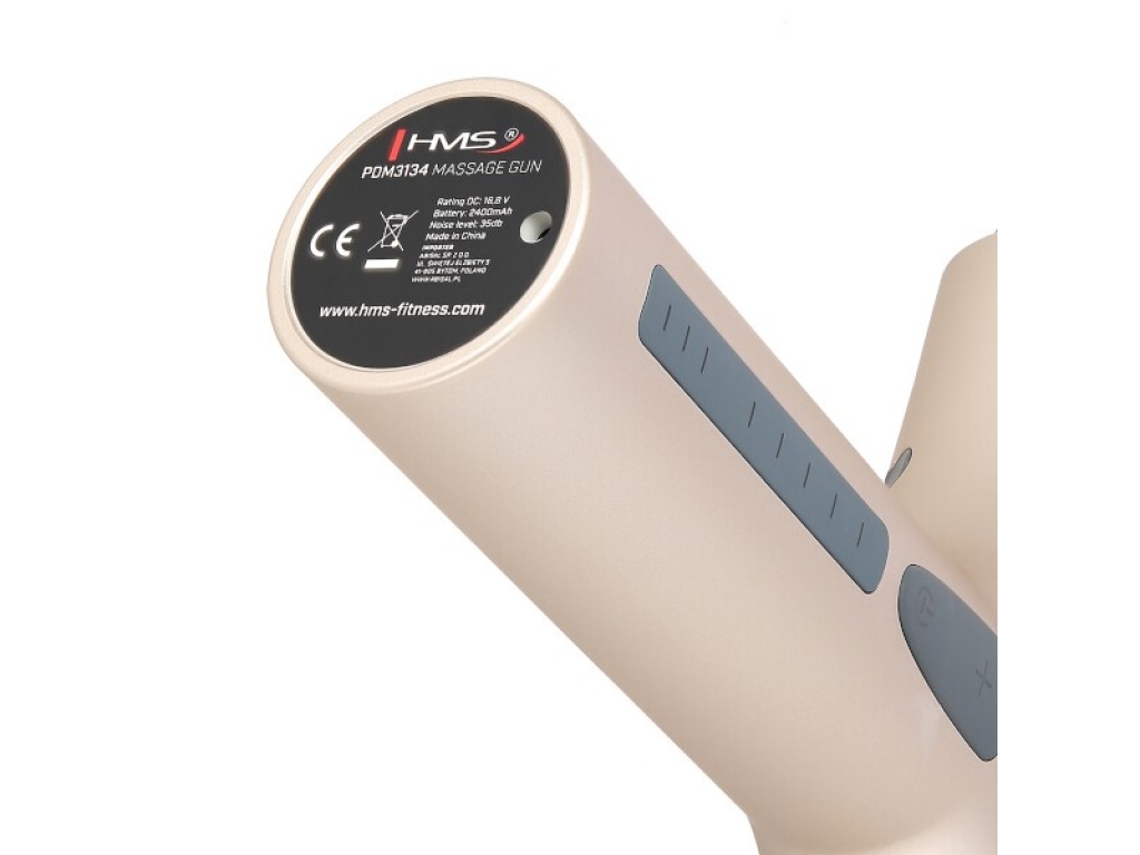Masážny prístroj PDM3134 má 5 rýchlostí masáže, kedy na najvyšší stupeň vykoná hlavica až 3200 kmitov za minútu. Ovládanie prístroja sa realizuje pomocou dvojitého tlačidla na ľavej strane rukoväte. Horné tlačidlo slúži pre zvyšovanie rýchlosti masáže. Spodné tlačidlo slúži na zapnutie a vypnutie prístroja a zároveň pre znižovanie rýchlosti masáže. Pod tlačidlami sa nachádza 5 stupňový indikátor, ktorý zobrazuje aktuálne zvolenú rýchlosť a nižšie sa nachádza 3 stupňový indikátor zobrazujúci úroveň nabitia akumulátora, ten pri plnom nabití zaistí až 240 minút masáže. Na spodnej strane nájdeme konektor pre pripojenie nabíjacieho adaptéra. Masáž prístrojom HMS PDM3134 podporuje lymfatický systém, uvoľňuje svalové napätie, pomáha zväčšovať mobilitu jednotlivých svalov a vplyvom pôsobenia vibrácií na receptory v pokožke pomáha rýchlejšiemu hojeniu mikro-zranenia a tým znižuje bolestivosť.