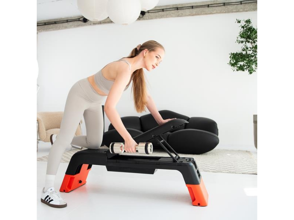 Behom pár sekúnd môžete schodík premeniť na plnohodnotnú posilňovaciu lavicu! Možnosť nastavenia operadla do troch rôznych uhlov umožňuje vykonávať širokú škálu silových cvikov, napr. s činkami alebo odporovými gumami. Toto riešenie kombinuje kondičné so silovým tréningom a umožňuje vám naplno využiť potenciál vášho tela.