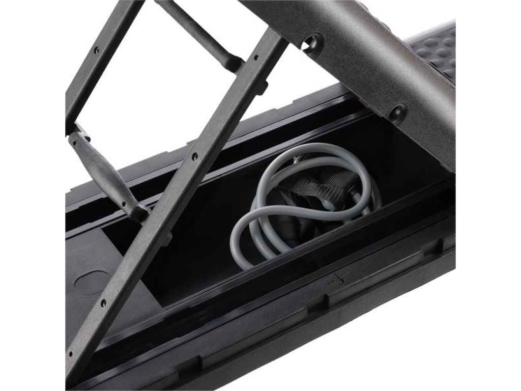 Mostík má vstavaný priestor na uloženie drobného príslušenstva, ako sú gumy, pásy alebo švihadlá, takže budete mať vždy po ruke všetko potrebné vybavenie. Súprava navyše obsahuje aj expandéry, ktoré umožňujú silový tréning bez nutnosti siahať po ďalších závažiach.