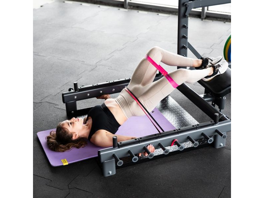 Platforma SMP01 je vybavená protišmykovou plošinou, ktorá zaisťuje stabilitu počas dynamických cvikov. Priložená podložka zvyšuje pohodlie a chráni chrbát počas hip thrustov a ďalších cvikov vykonávaných v ľahu.