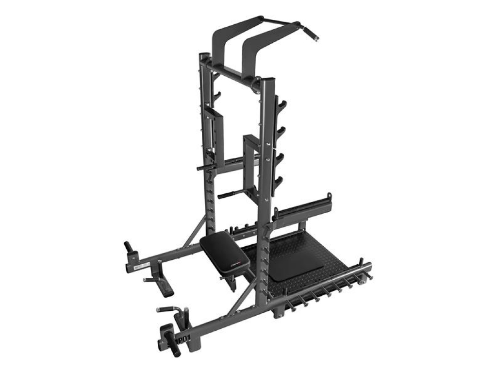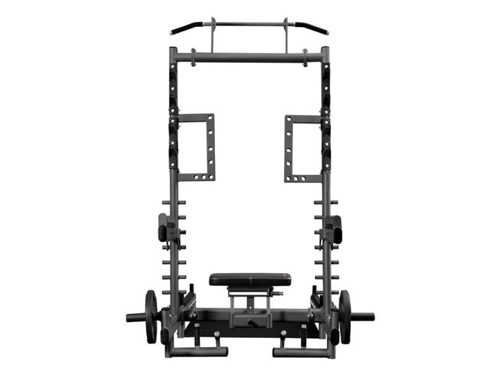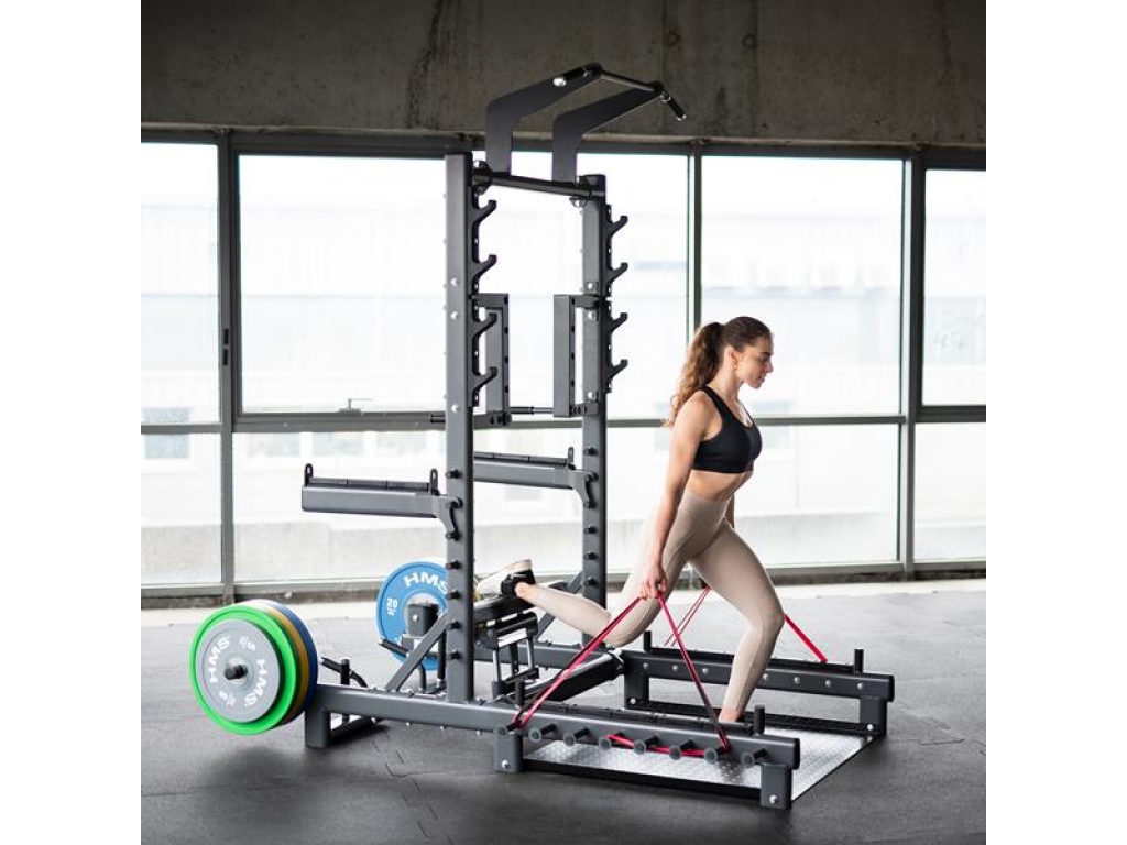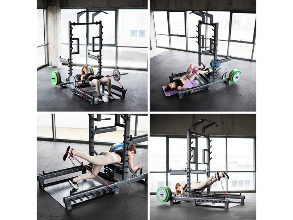 SMP01 je vaše nové tréningové centrum, ktoré vám umožnia nielen vykonávať hip thrusty alebo mŕtvy ťah. Tento prístroj je navyše vybavený hrazdou na príťahy, úchyty na dipy, háky na činku, bezpečnostnými zarážkami, tŕňmi na skladovanie závažia a čapy na prácu s odporovou gumou. Vďaka premyslenej konštrukcii a širokým možnostiam nastavenia sa SMP01 hodí ako do domácej posilňovne, tak do pokročilejších tréningových priestorov.