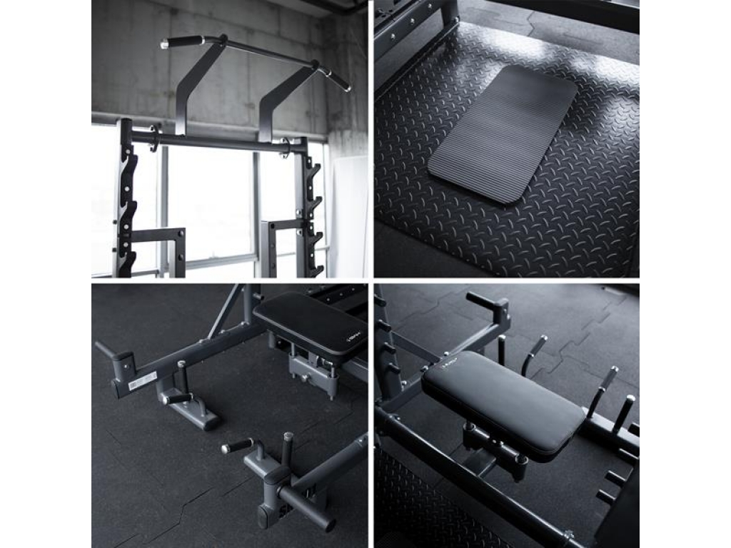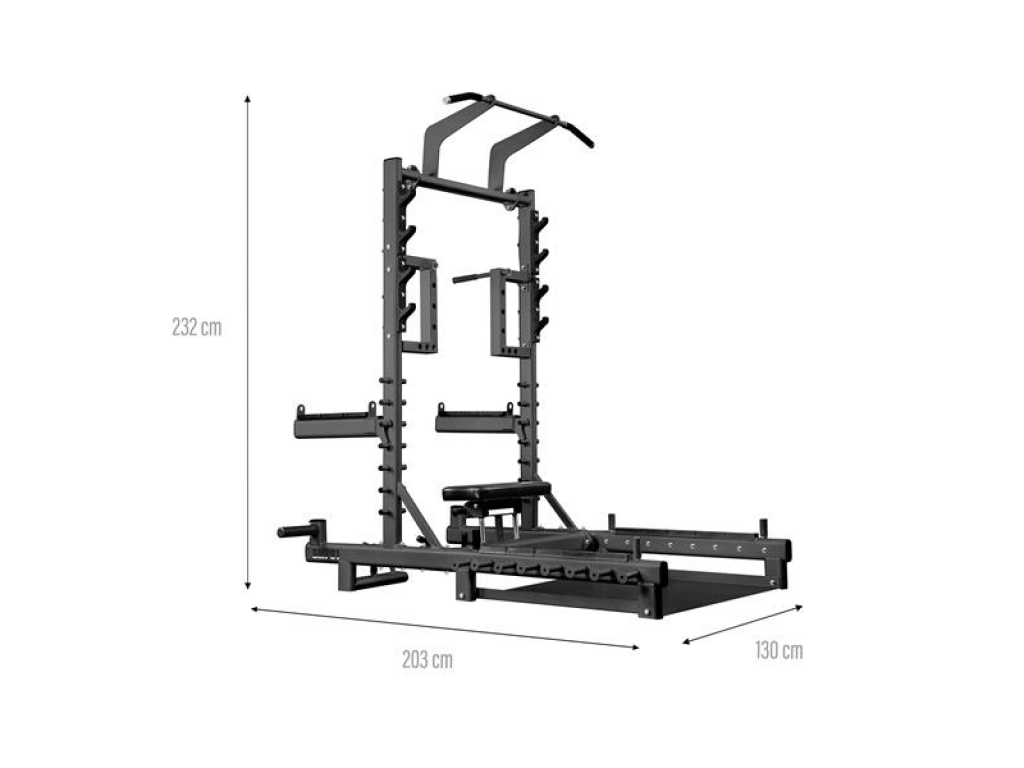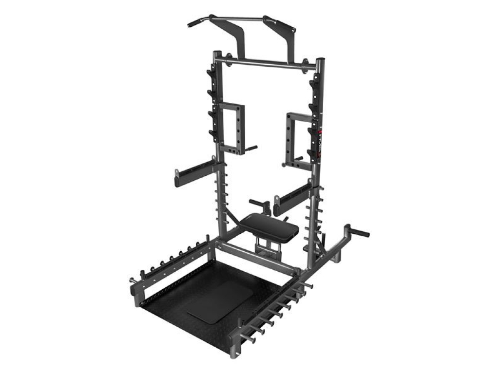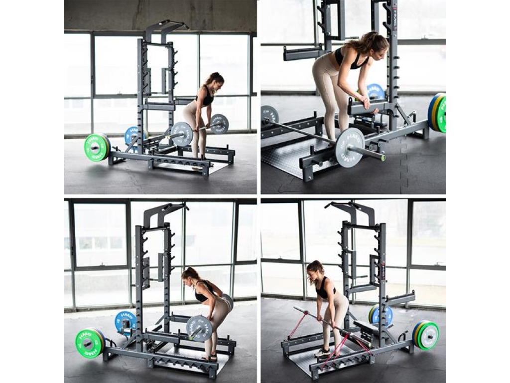 SMP01 je vaše nové tréningové centrum, ktoré vám umožnia nielen vykonávať hip thrusty alebo mŕtvy ťah. Tento prístroj je navyše vybavený hrazdou na príťahy, úchyty na dipy, háky na činku, bezpečnostnými zarážkami, tŕňmi na skladovanie závažia a čapy na prácu s odporovou gumou. Vďaka premyslenej konštrukcii a širokým možnostiam nastavenia sa SMP01 hodí ako do domácej posilňovne, tak do pokročilejších tréningových priestorov.