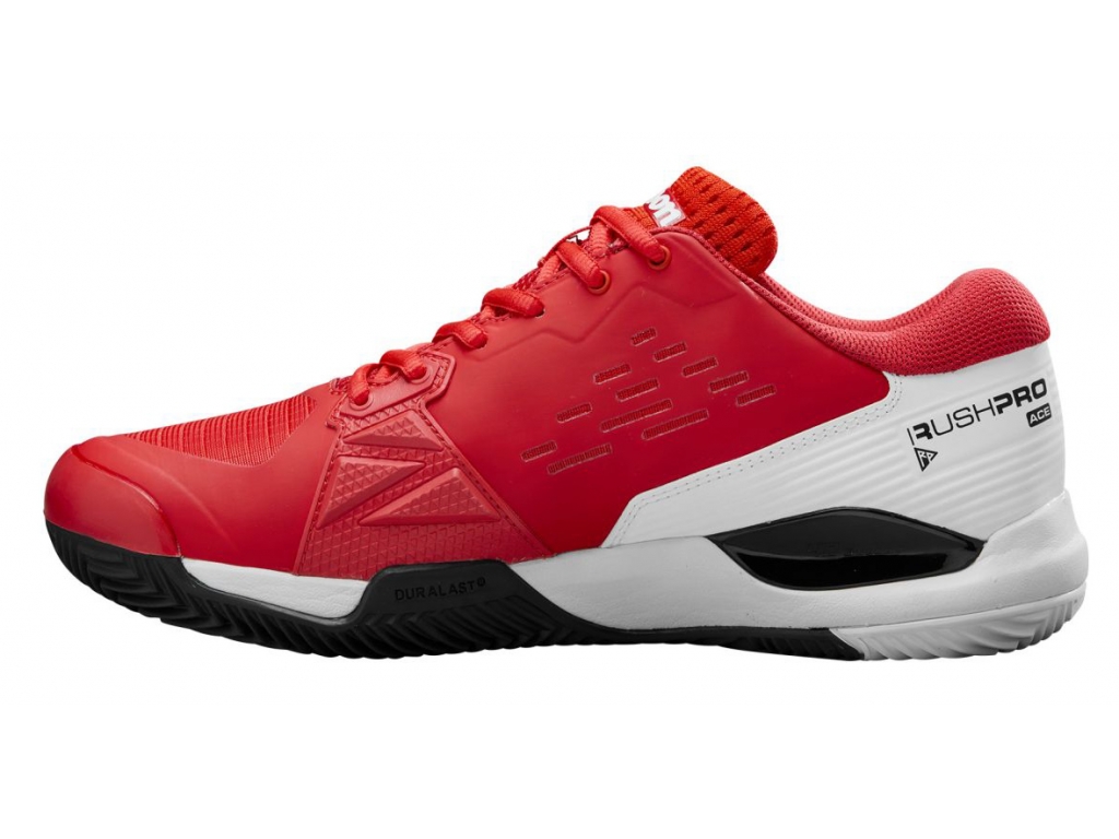 Wilson Rush Pro Ace Clay si zachováva svoju povesť najvyššej výbušnosti a stability, ale teraz má atletickejší a zúžený dizajn. Obsahuje 4D Support Chassis, oblúkovú konštrukciu v podrážke pre silné a agresívne pohyby smerom k sieti. Minimálne vrstvený zvršok zvyšuje extra priedušnosť, čo z neho robí ideálnu topánku, ktorá spája silu a pohodlie pre hráčov, ktorí hrajú agresívne a radi útočia na sieť.