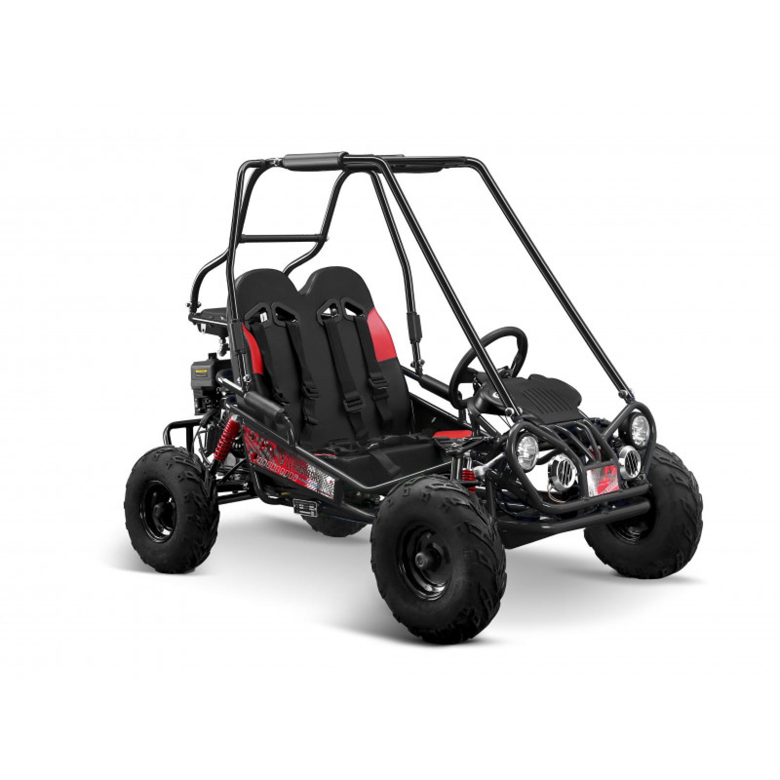 buggy majú na rozdiel od štvorkoliek volant a bezpečnostný rám. Ak hľadáte skutočný adrenalín, ste na správnom mieste. Buggy Predator je vhodná pre užívateľov s výškou cca od 100 cm do 160 cm, je vybavená bezpečnostným rámom a bezpečnostnými pásmi. Veľkou výhodou je nielen elektrický štartér, ktorým sa nechá buggy. naštartovať a vypnúť, ale aj predné osvetlenie a nožná brzda. Buggy sú dvojmiestne s pohonom zadných kolies. Súčasťou je diaľkové ovládanie vďaka ktorému môžete buggy na diaľku vypnúť. Predné osvetlenie LED. Maximálna rýchlosť až 45 km/h.