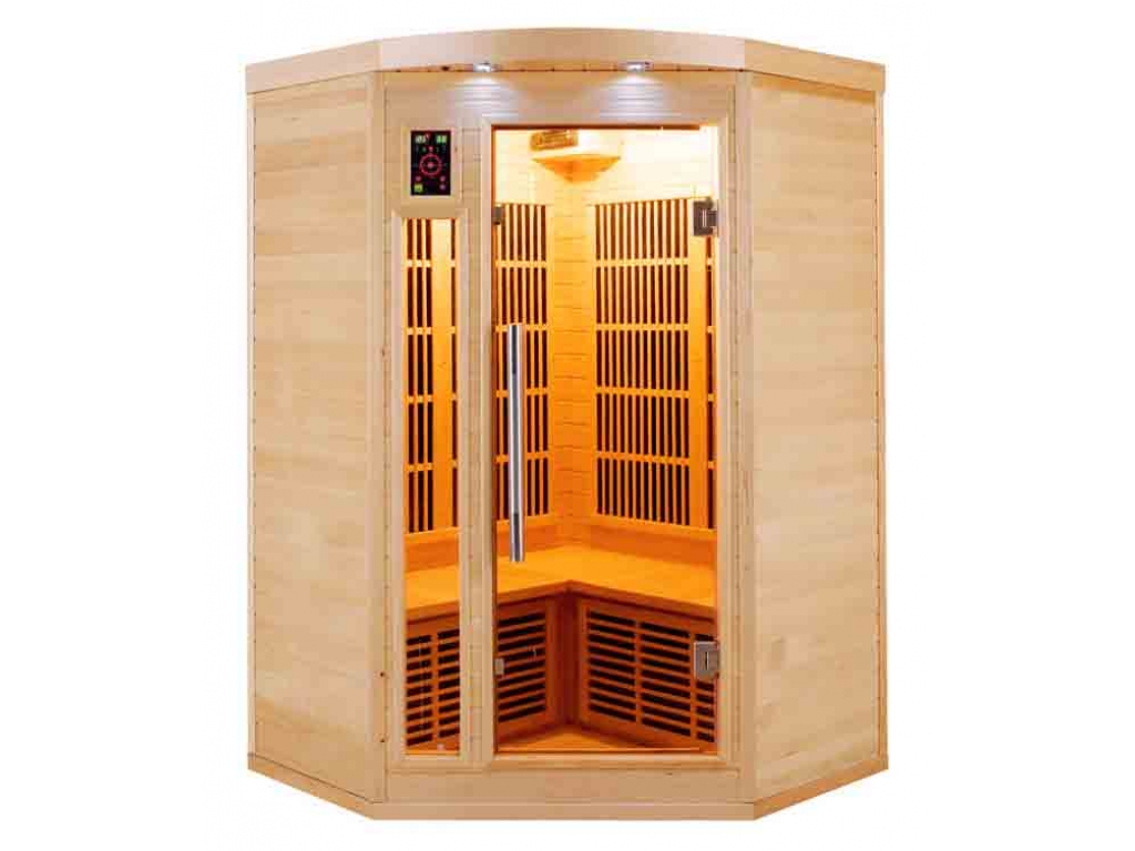 Domáce rohová infrasauna Apollon 2-3 popredného výrobcu infrakabín FRANCE SAUNA je určená pre až tri osoby a je vyrobená z kanadského jedlovca a ľahko zapadne do akéhokoľvek interiéru. O svoje zdravie môžete teraz starať a relaxovať aj z pohodlia svojho domu či bytu. Pobyt v infrasaune má spustu pozitívnych zravotních a kozmetických účinkov. Saunovanie má blahodarný vplyv na celý kardiovaskulárny systém, odstraňuje bolesti chrbta, kĺbov a končatín, posilňuje imunitný systém, odstraňuje alebo predchádza celulitíde a zlepšuje kvalitu pleti. Pobyt v infrasaune si navyše môžete spríjemniť počúvaním FM rádia alebo si pustiť svoju obľúbenú hudbu z MP3 prehrávača. Kvalitné uhlíkové infrazářičezajišťují rovnomerné rozloženie tepla v kabíne, sú úsporné a veľmi rýchlo vyhreje saunu na nastavenú teplotu.Infračervené panely sú optimálne umiestnené na stenách, na lavici a pod podlahou, aby teplo prenikalo do celého tela.