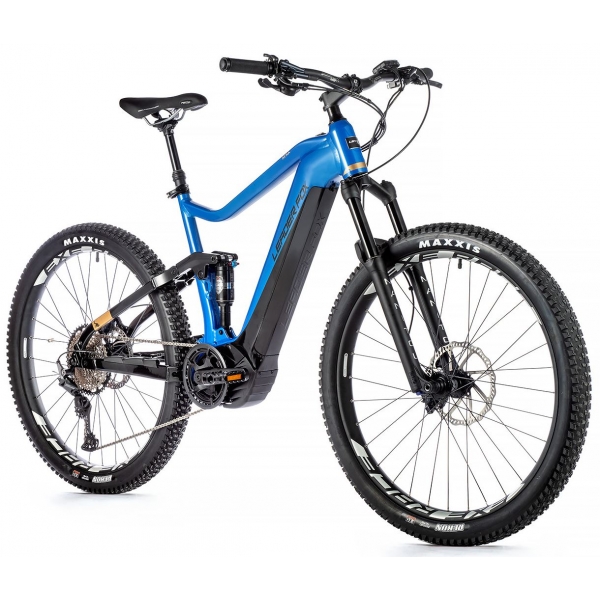 Novinka. Horský celoodpružený elektrobicykel Leader Fox AYRA 29" 2023 s hliníkovým rámom, športovým dizajnom, odpruženou prednou vidlicou a zadným tlmičom Manitou, kotúčovými brzdami. Ayra je pripravená na jazdu v horách a pre zdolávanie vysokých kopcov.