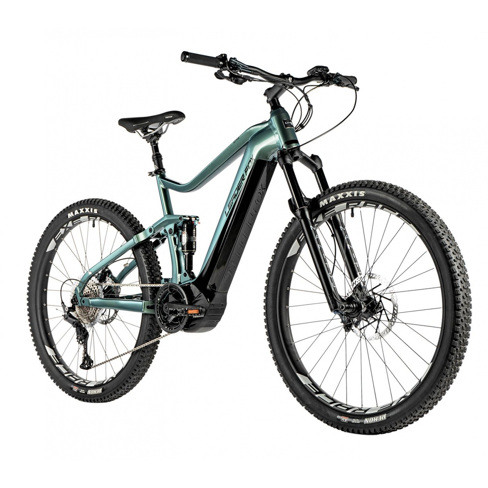 Novinka. Horský celoodpružený elektrobicykel Leader Fox AYRA 29" 2023 s hliníkovým rámom, športovým dizajnom, odpruženou prednou vidlicou a zadným tlmičom Manitou, kotúčovými brzdami. Ayra je pripravená na jazdu v horách a pre zdolávanie vysokých kopcov.
