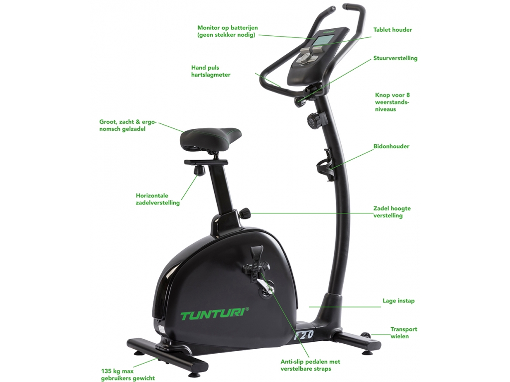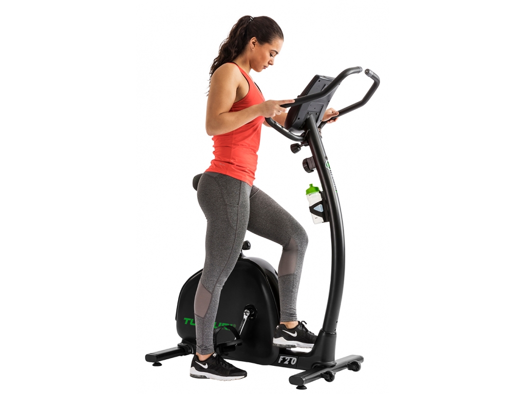 Rotoped TUNTURI F20 Bike Competence z novej rady ponúka zákazníkom kombináciu vynikajúcej mechaniky a ergonómie rámu za solídnu cenu. Rámová konštrukcia zaručí pohodlný a správny posed ako pre nižšie, tak aj vyššie postavy s tým, že má nastaviteľný sklon riadidiel a horizontálne aj vertikálne nastavenie sedadla. Stabilná a masívna konštrukcia spolu s kvalitnými komponentami zaručuje dlhú životnosť stroja aj pri využití ťažšími osobami a predurčuje model aj pre pravidelný kondičný tréning. Šliapanie na ňom je práve vďaka magnetickému brzdnému systému a kvalitnej mechanike úplne tiché. Stroj je určený pre domáce využitie, zotrvačník s hmotnosťou 9 kg zaručuje plynulý chod rotopedu. Odpor je riadený manuálnym regulátorom v 8 stupňoch od nuly až do maxima. Masívny rám má nosnosť 135 kg.
