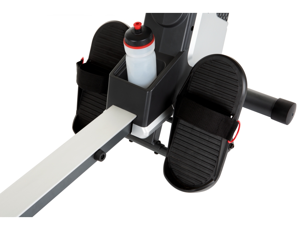 Pomocou nastaviteľných popruhov na nohy si veslovací trenažér dokonale prispôsobíte svojej postave. Rozstup nášľapných dosiek 18 cm a výška sedadla 33 cm sú ergonomicky navrhnuté. Praktický úložný box je možné použiť napríklad na úzke fľaše s pitím alebo ako držiak na chytrý telefón.