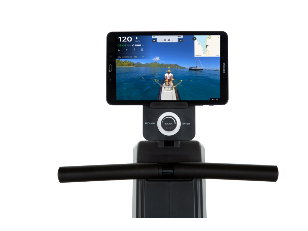 Exkluzívny držiak na tablet otvára nové dimenzie moderného veslárskeho tréningu. Umiestnite tablet do držiaka a ponorte sa do cudzích vodných svetov alebo sa zúčastnite náročných veslárskych závodov. Inovatívne fitness aplikácie Kinomap (s funkciou fotoaparátu) vám umožní rýchlo zabudnúť na nudné steny obývacej izby. Fascinovaní virtuálnymi veslárskymi výletmi vám tréning pôjde od ruky. Nechajte sa teda uniesť a dosiahnite nové výšiny!