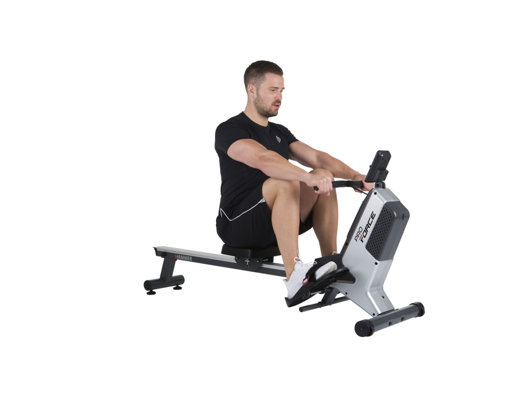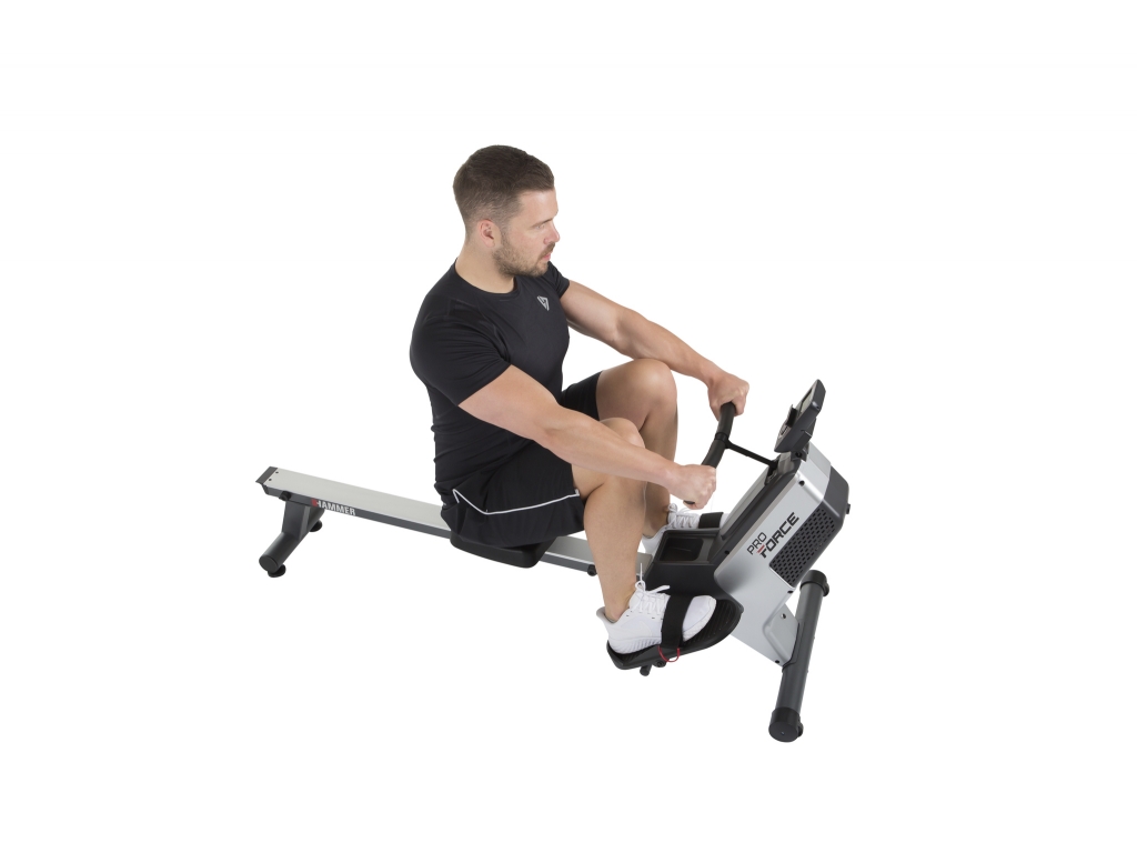 HAMMER Pro Force vám zaručuje viditeľný tréningový úspech vďaka ergonomickému poradiu pohybov. Dynamické veslovacie zábery zaisťujú rast svalov na zadnej strane tela. Vďaka tomu, že pracujú všetky hlavné svalové skupiny naraz, spálite pri veslárskom tréningu veľa kalórií za veľmi krátku dobu. Pevnejšie nohy, sformované paže a optimalizovaný kardiovaskulárny tréning - s jediným strojom môžete dosiahnuť viacnásobné účinky pre lepšiu kondíciu a pohodu. Zároveň pravidelným tréningom dosiahnete vzpriamenejšie držanie tela. Okrem efektívneho formovania postavy tento veslovací trenažér od spoločnosti HAMMER taktiež zabraňuje bolestiam chrbta a zlepšuje vaše zdravie.