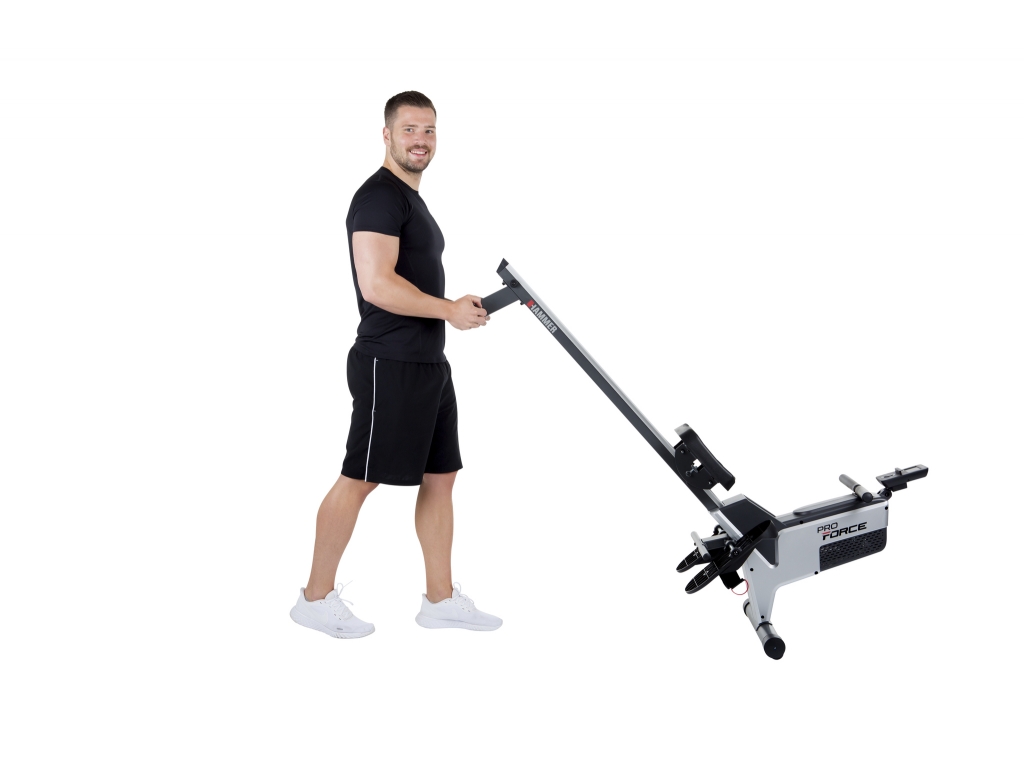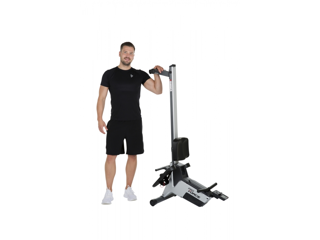 Všetko v jednom - využite mnoho výhod atletického tréningu celého tela. Zlepšite svoju vytrvalosť v dlhodobom horizonte a znateľne zosilnite. Zostavte si tréning podľa svojich individuálnych prianí a vyberte si z radu programov. Moderný veslovací trenažér Pro Force kombinuje moderný dizajn s inovatívnou technológiou a ergonomickou sekvenciou pohybov. Vďaka praktickému skladaciemu mechanizmu sa tento stroj HAMMER zaručene zmestí do každej obývačky. Krok za krokom sa tak o jeden mocný krok priblížite k svojim fitness cieľom.