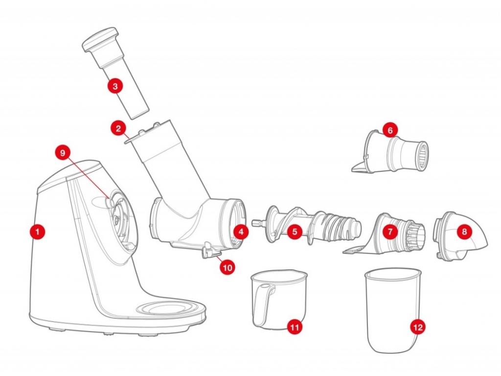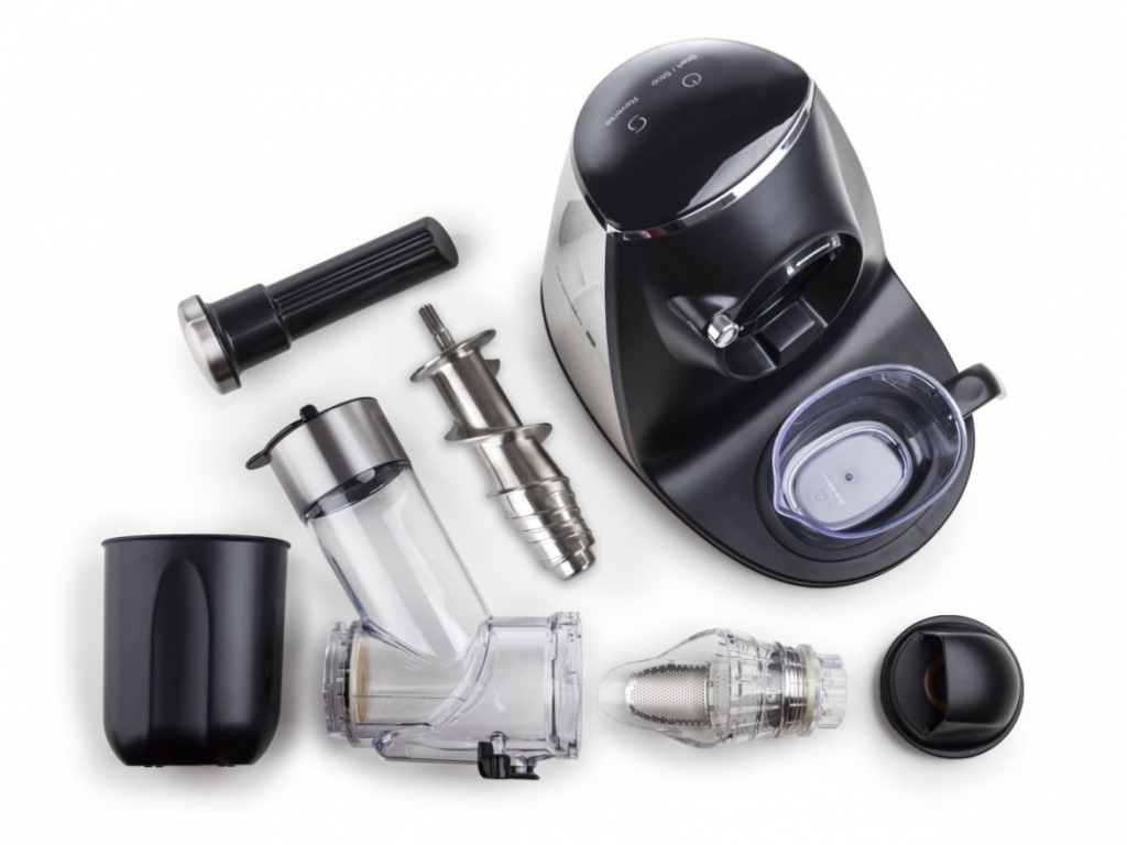 Ovládanie odšťavovača spočíva v prepínaní dvoch dotykových tlačidiel. Jedným tlačidlom prístroj zapnete a vypnete a druhým prepnete na spätný chod. Keď sa vám v šneku zasekne kúsok ovocia či zeleniny, nezúfajte. Prepnite na spätný chod, šnek sa uvoľní a môžete pokračovať v práci.