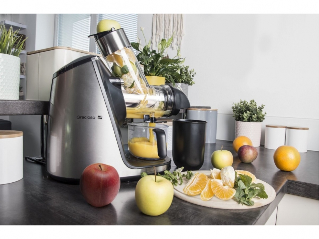 Odšťavovač G21 Gracioso horizontal je multifunkčný superhrdina, ktorý vám pomôže pripraviť dostatok zdravej šťavy zo všetkých druhov ovocia a zeleniny pre celú rodinu. Vyrobte si ovocné a zeleninové šťavy v pohodlí vlastnej kuchyne, doprajte si to najlepšie pre svoje zdravie.