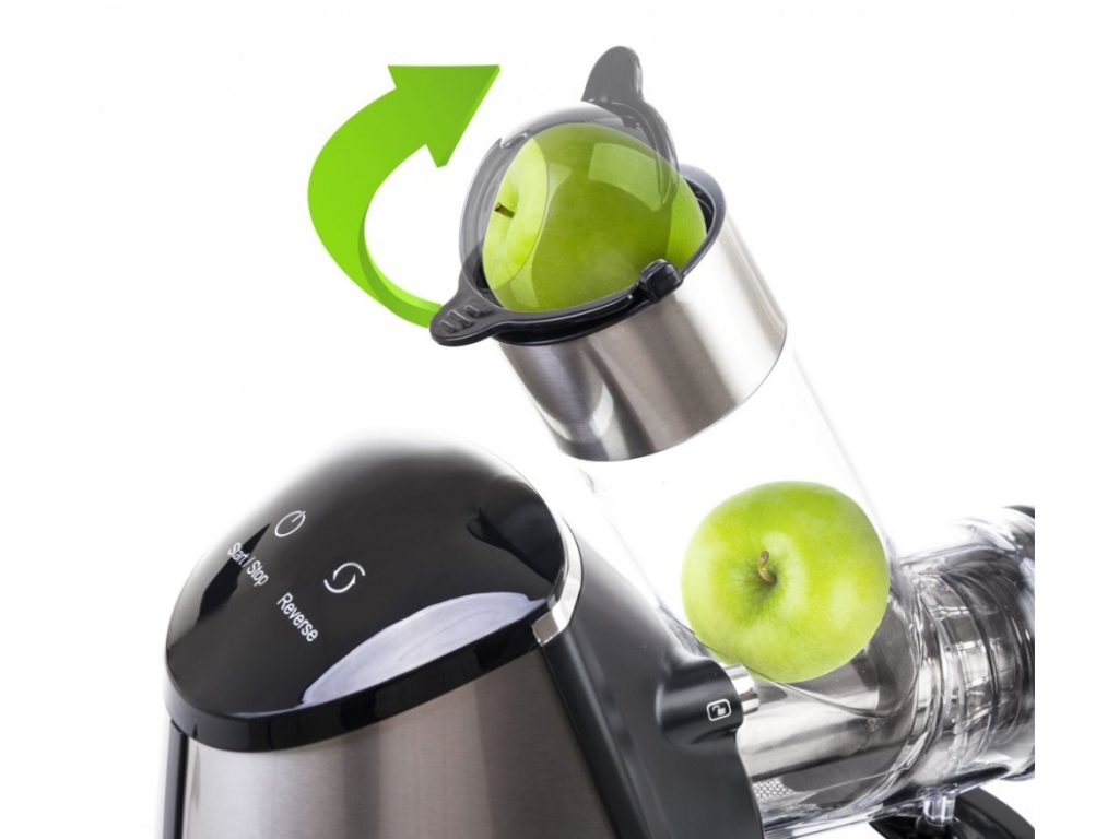 Plniaci otvor je prispôsobený pre vkladanie veľkých kusov ovocia a zeleniny, ako sú mandarinky alebo jabĺčka aj pre odšťavovanie podlhovastých surovín, napríklad mrkvy alebo zeleru.