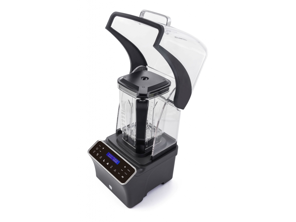 Po uzavretí mixovacej nádoby so surovinami sklopíte odhlučňovací kryt, jedným dotykom spustíte vákuovanie a potom môžete mixovať.
