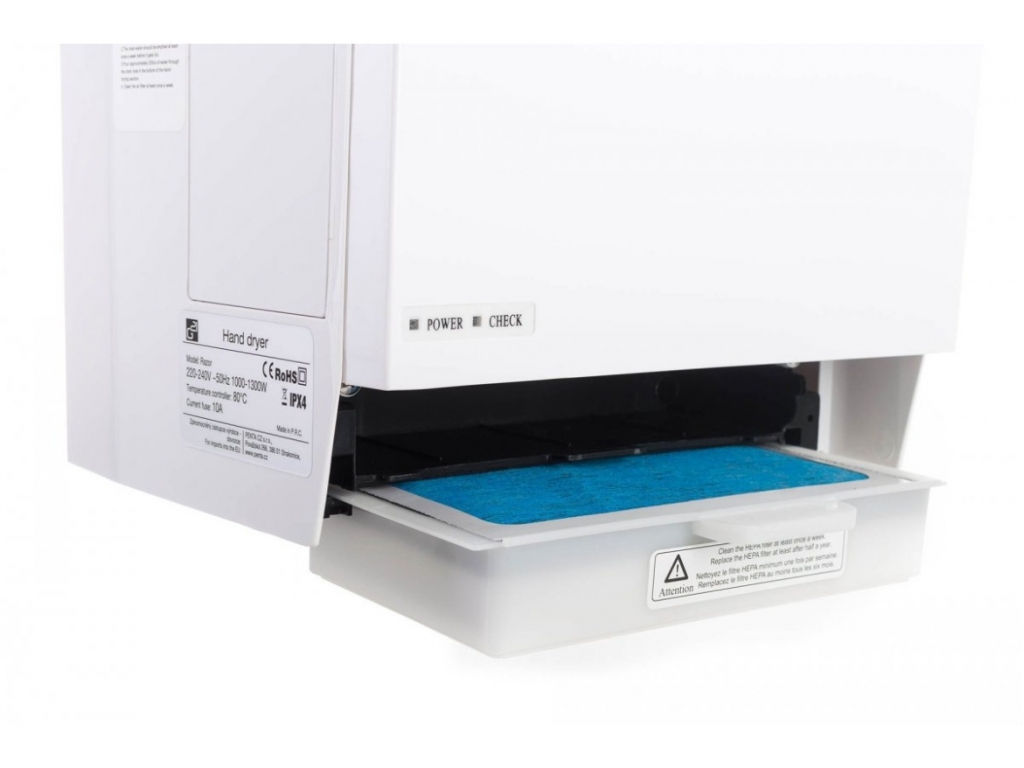 G21 Razor má nízku spotrebu elektrickej energie. Vďaka bezdotykovému zapínaniu a vypínaniu sušiča sa minimalizuje šírenie baktérií na rukách. Silnejšie a rýchlejšie osušenie vám poskytne maximálny komfort. Kryt je vyrobený z antibakteriálneho ABS plastu, ktorý je veľmi ľahký. Dizajn sušiča pôsobí elegantne a čisto.