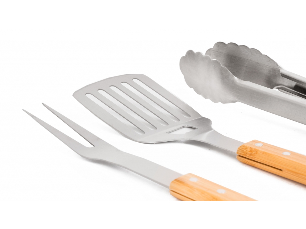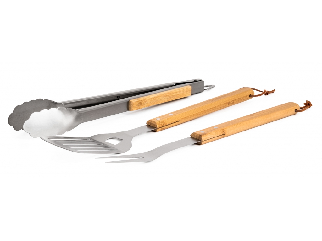 Vidlica je ideálna pre bezpečné napichovanie a prenášanie horúcich pokrmov z grilu rovno na tanier. S obracačkou ľahko a bezpečne otočíte burgre, zeleninu aj ryby. Grilovacie kliešte vám umožnia uchopenie a prenášanie menších kúskov mäsa či zeleniny.