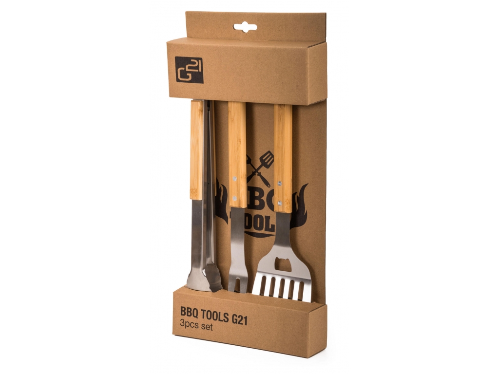 Doprajte si pohodlie pri grilovaní s praktickou 3dielnou sadou G21. Grilovacie náradie je vyrobené z odolnej nerezovej ocele a má štýlové bambusové rukoväte. Vďaka premyslenému spracovaniu skvele vyzerá a zaručuje komfort pri každom grilovaní.