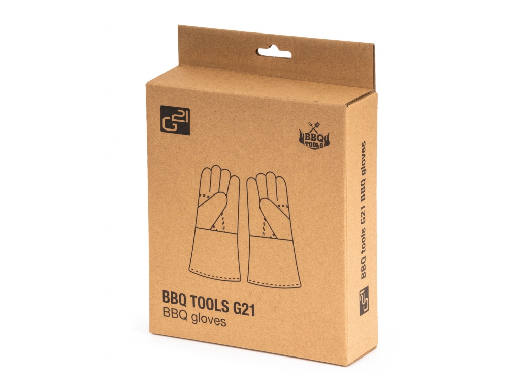 Grilovacie rukavice G21 sú vyrobené z pevnej kože, ktorá chráni ruky pred žiarom a plameňmi. Poskytujú istotu pri každom dotyku s horúcim roštom alebo riadom. Sú vhodné pre každého, kto chce grilovať bezpečne a štýlovo.