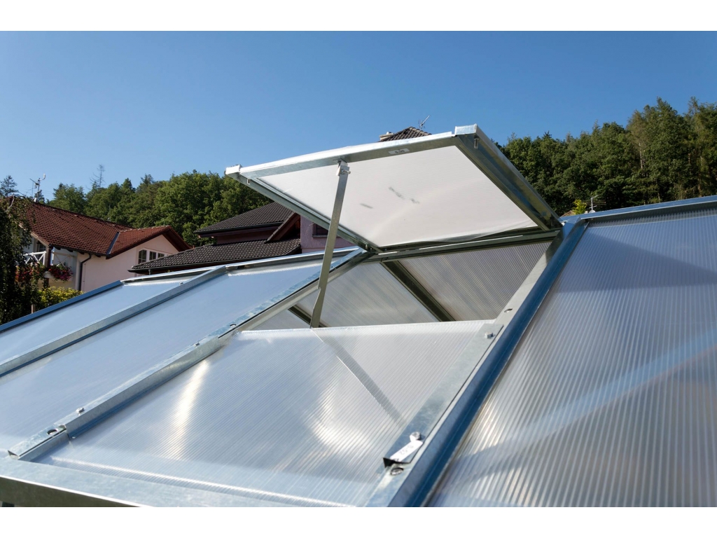 K skleníku si môžete dokúpiť automatický otvárač strešného okna, vďaka ktorému ušetríte čas, pretože sa okno bude otvárať samo podľa teploty vo vnútri skleníka a nehrozí tak jeho prehriatie v horúcich letných dňoch.