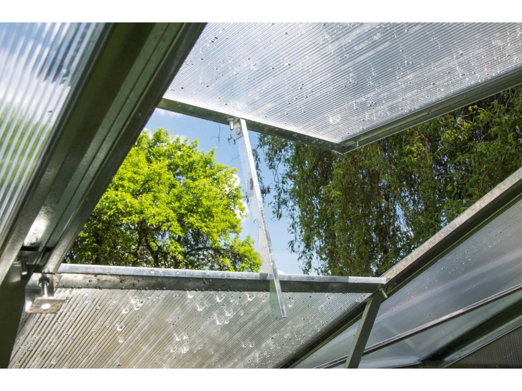 K skleníku si môžete dokúpiť automatický otvárač strešného okna, vďaka ktorému ušetríte čas, pretože sa okno bude otvárať samo podľa teploty vo vnútri skleníka a nehrozí tak jeho prehriatie v horúcich letných dňoch.