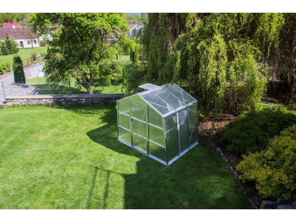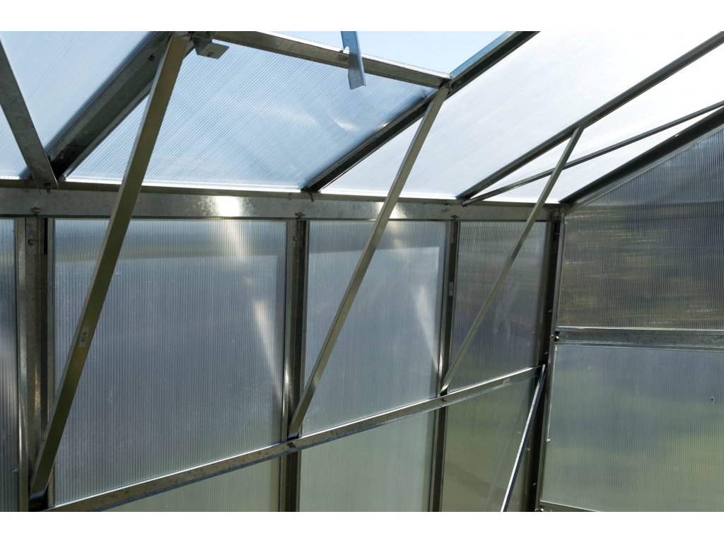 Záhradný skleník G21 má stabilnú konštrukciu z kvalitných pozinkovaných profilov, ktoré zaisťujú vyššiu pevnosť a odolnosť. Presklenie je z dutinkového polykarbonátu s hrúbkou 4 mm. Životnosť polykarbonátu predlžuje UV filter, ktorým sú dosky opatrené.