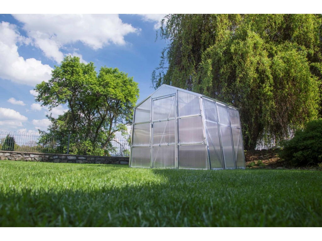 Skleníky z polykarbonátu udržujú viac tepla, než klasické (sklenené) skleníky. Pri zatiahnutej oblohe sa polykarbonátové skleníky ohrejú rýchlejšie. Dutinkový polykarbonát s hrúbkou 4 mm je vysoko kvalitný a vďaka ochrannému UV filtru má aj dlhšiu životnosť.