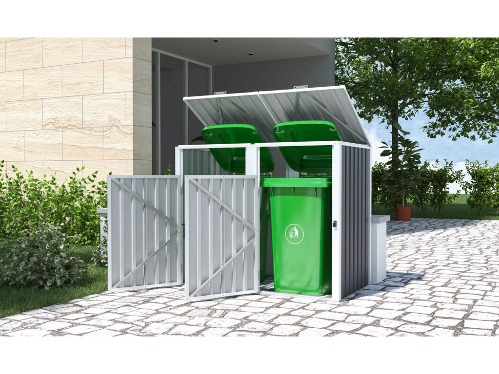 Praktický a štýlový plechový prístrešok na popolnice je ideálnou úpravou svojho majiteľa nehnuteľností, ktorí chcú okolie domu, chaty či chalupy čisté a úhľadne upravené. Prístrešok chráni popolnice pred nepriaznivými vplyvmi počasia aj pred zvieratami.
