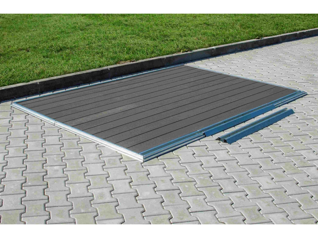 WPC podlaha pre záhradný domček je už dodávaná na mieru pre konkrétny model a jej zostavenie je jednoduché.