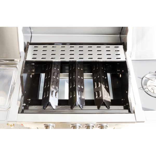 Priamo nad horáky je umiestnený kovový profil, ktorý zabraňuje stečeniu tuku medzi plamene a jeho vzplanutia. Zároveň zabraňuje priamemu ohrevu mriežky len v mieste horáku, nedochádza tak k prehrievaniu iba jednej časti mriežky, ale celá mriežka sa vyhrieva rovnomerne. Prípadný tuk kvapkajúci z grilovaného mäsa steká po stenách grilu do odkvapkávacia misky v spodnej časti grilu, čo predlžuje životnosť u horákov.