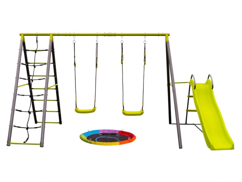 Ako dopriať deťom veľa skvelej a zároveň bezpečnej zábavy? Zaobstarajte im veľký záhradný set s hojdačkami, hojdacím kruhom, lezeckou stenou i šmykľavkou. Na kruhu sa deti pohodlne pohupujú, na hojdačkách pretekajú, ktorí vyššie doletí, šmykľavka ich zabaví a zlepší im fyzičku a lezecká stena ich motivuje skúsiť niečo nové.