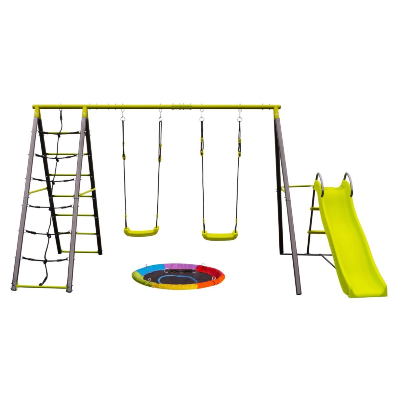 Hojdací set G21 poskytuje deťom veľkú možnosť zábavy a vonkajšieho vyžitia. K sade s rámom, rebríkom, lezeckou sieťou, 2 hojdačkami, hojdacím kruhom a šmykľavkou môžete dokúpiť aj hojdačku s opierkou a bezpečnostnou zábranou pre batoľa.