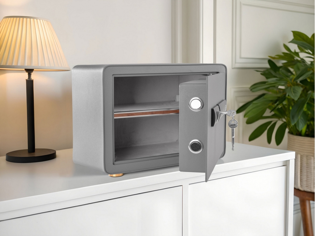 Hľadáte bezpečný priestor pre svoje osobné doklady, peniaze alebo elektroniku? Ak chcete chrániť svoj majetok nielen bezpečne, ale aj štýlovo, potom je trezor G21 tou správnou voľbou. Vybavili sme ho biometrickým zámkom na odtlačok prsta, luxusným vnútorným čalúnením, LED osvetlením a možnosťou prispôsobiť priestor podľa aktuálnych potrieb. Vaše cennosti tak budú v úplnom bezpečí.
