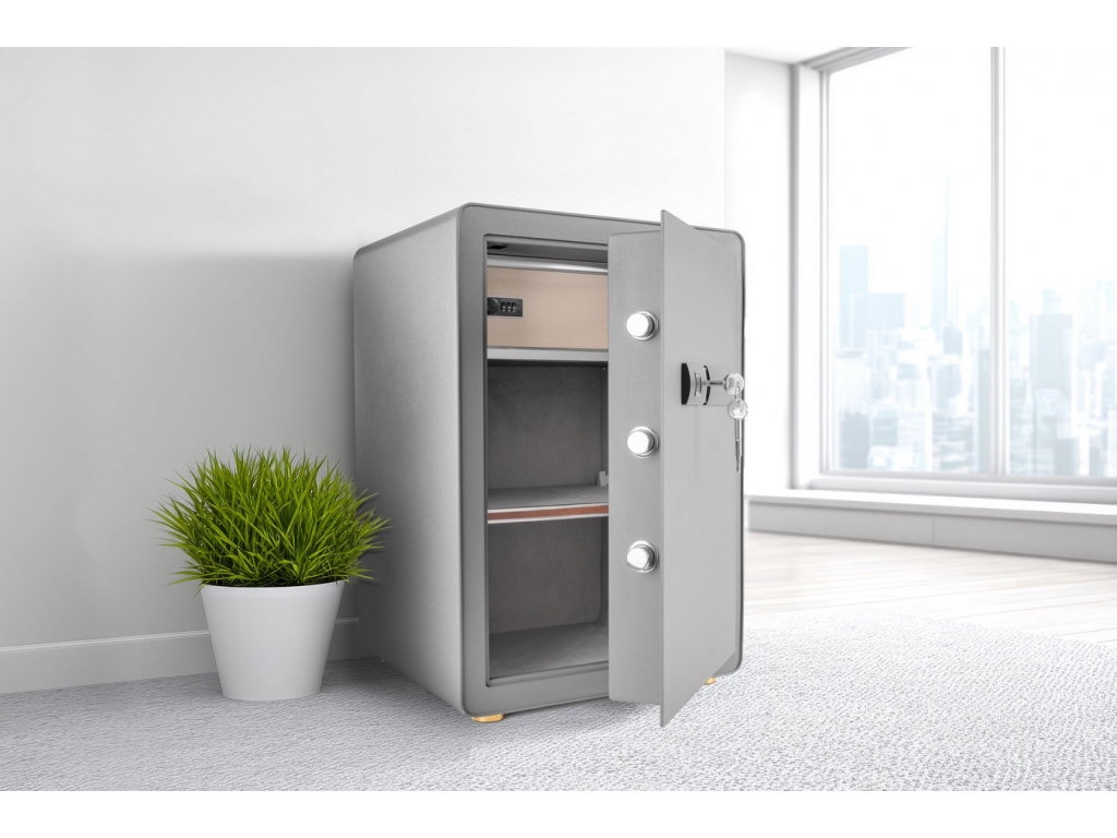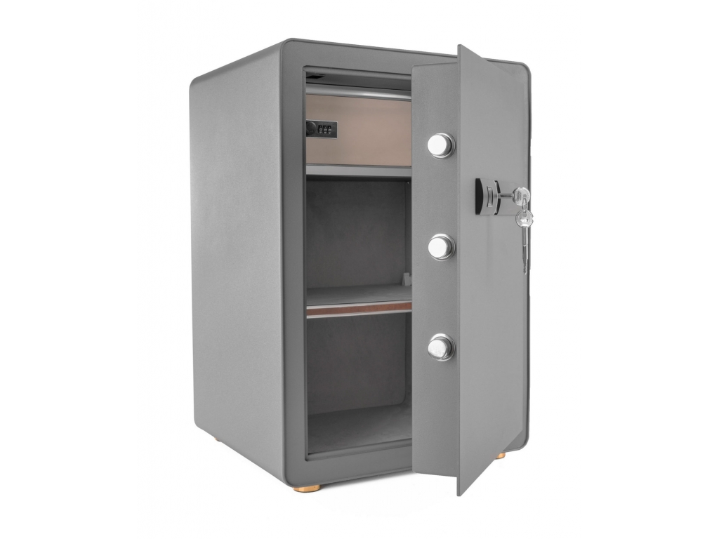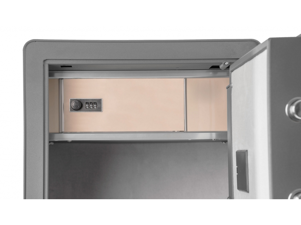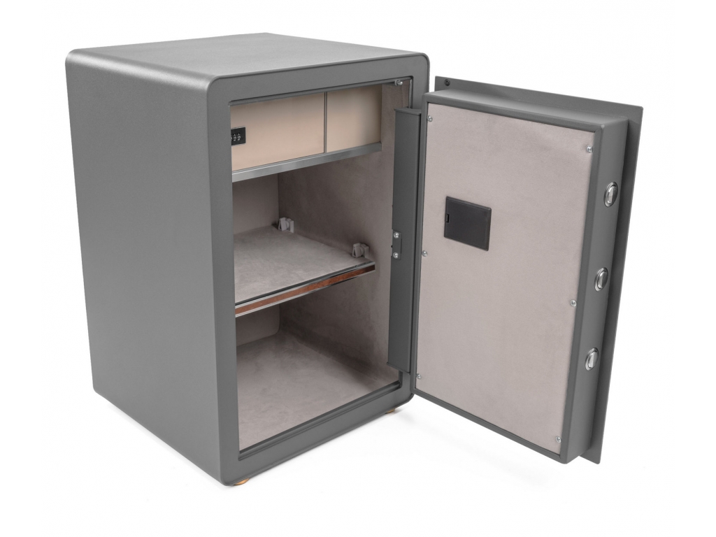 Do trezoru G21 sme pridali odnímateľnú policu, vďaka ktorej si vnútorný priestor jednoducho prispôsobíte podľa aktuálnych potrieb. Nezáleží na tom, či chcete uložiť doklady, šperky alebo cennú techniku, vždy budete mať dostatok miesta. K dispozícii máte 51,6 litra úložného priestoru.
