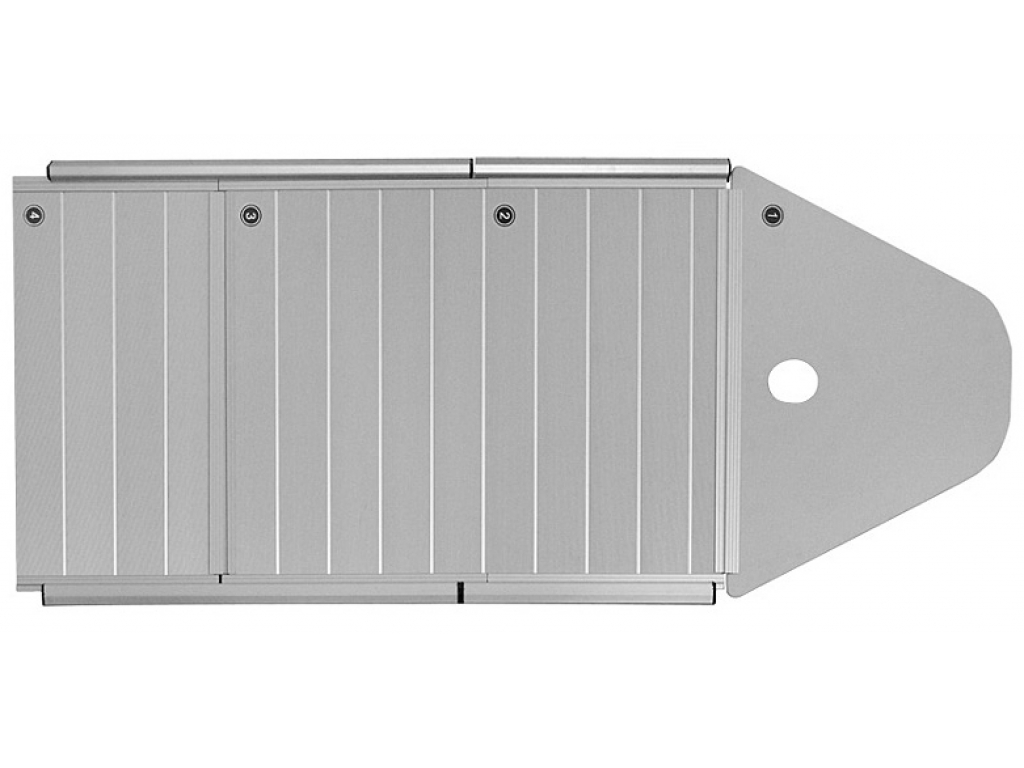 Vystužená podlaha hliník je zložená z dielov, ktoré sa spájajú hliníkovými profilmi. Jednotlivé diely podlahy sú vyrobené z hliníka, ktorý má protišmykovú úpravu. Špic podlahy (číslo dielu 1) je aj pri hliníkovom prevedení vyrobený z vodeodolnej preglejky. Pre vybratie podlahy z člna je nutné podlahu rozobrať na jednotlivé diely, ktoré je následne možné zabaliť do tašky v ktorej sa podlaha k člnu dodáva. Vystužená podlaha sa používa iba u člnov, ktoré majú nafukovací kýl. Na priloženom obrázku si môžete všimnúť otvor v ktorom je po vložení podlahy umiestnený ventil na nafukovanie kýlu člna. Výhodou tohto druhu podlahy je jej pevnosť vďaka čomu môžete využiť celú vnútornú plochu dna člna.