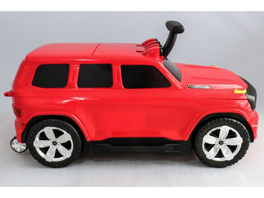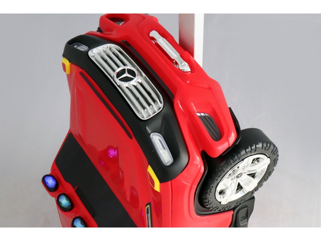Licencované odrážadlo/kufrík Mercedes-Benz Ener-G-Force. Detské odrážadlo a kufrík 2v1 Mercedes-Benz Ener-G-Force je úžasná kombinácia zábavy a praktickosti, zabalená v elegantnom licencovanom dizajne luxusného auta od značky Mercedes-Benz v dvojfarebnej kombinácii. Kufrík sa otvára po zatlačení na prednú mriežku a môže slúžiť na uloženie hračiek, oblečenia a ďalších vecí dôležitých pre vaše dieťa, ktoré sa tak zábavnou formou učí udržiavať poriadok. Pevná hliníková vysúvacia rukoväť umožňuje pohodlné prevážanie. Pre funkciu jazdného vozidla stačí zasunúť rukoväť a zo strechy vysunúť držadlo. Po nasadnutí sa dieťa môže odrážať a pohybovať v priamom smere. Autíčko je ideálnym spoločníkom pri cestovaní s deťmi, kedy slúži zároveň ako zábavná hračka aj štýlová batožina. Priestor batožiny je rozdelený látkovou prepážkou a obsahuje sieťovanú kapsu. Väčšina leteckých spoločností batožinu tohto rozmeru akceptuje ako príručnú batožinu. Splňte sny každého dieťaťa s touto multifunkčnou licencovanou hračkou značky Mercedes-Benz Ener-G-Force! Je to praktické, je to atraktívne, je to všetko, čo si dieťa môže priať!