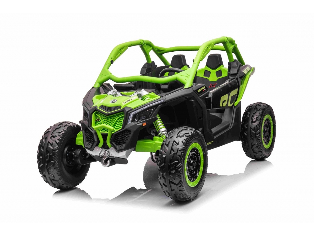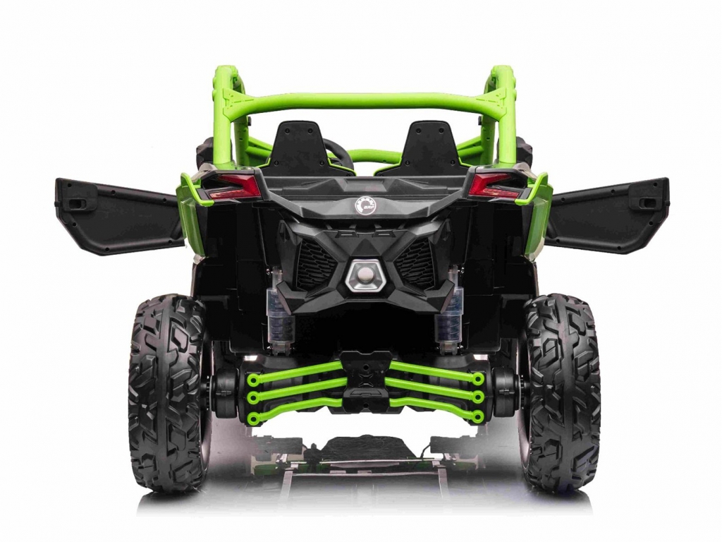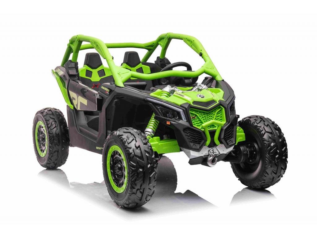 Jedno z najväčších autíčok v našej ponuke CAN-AM Maverick s 12V/14Ah prenosnou batériou s pohonom 4X4. Autíčko CAN-AM má mohutný vzhľad, otváracie dvere, zadný úložný priestor, kvalitné materiály a spracovanie. Má dve koženkové sedačky, čím je vhodné pre dve deti. Autíčko je taktiež vybavené svietiacimi prednými a zadnými LED svetlami a podsvietenou palubovkou. Výbavou volantu sú 2 tlačidlá pre efektnú húkačku, modernú muziku a pesničky, prípojka pre MP3, USB kľúč a SD kartu a ovládanie hlasitosti zvuku a efektov. Pre bezpečnosť dieťaťa je na sedačke nastaviteľný bezpečnostný pás. Otváracie dvere, zvukové efekty, indikátor stavu batérie , výkonné 35 W motory s pohonom 4x4, 3 rýchlosťami vpred a 1 vzad, vďaka tejto výbave je vhodné aj pre jazdu v teréne. Sedadlo šoféra je nastaviteľné.