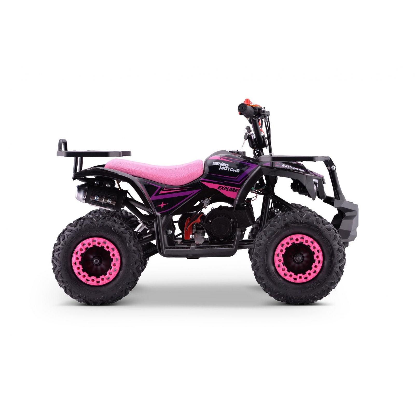 Predstavujeme Beneo Motors Explorer – Prvá vec, ktorá zaujme, je kvalita. Rám, predná náprava a povrchová úprava: táto štvorkolka je vyrobená na dlhú životnosť a ponúka vynikajúci výkon pre jazdcov už od 4 rokov!