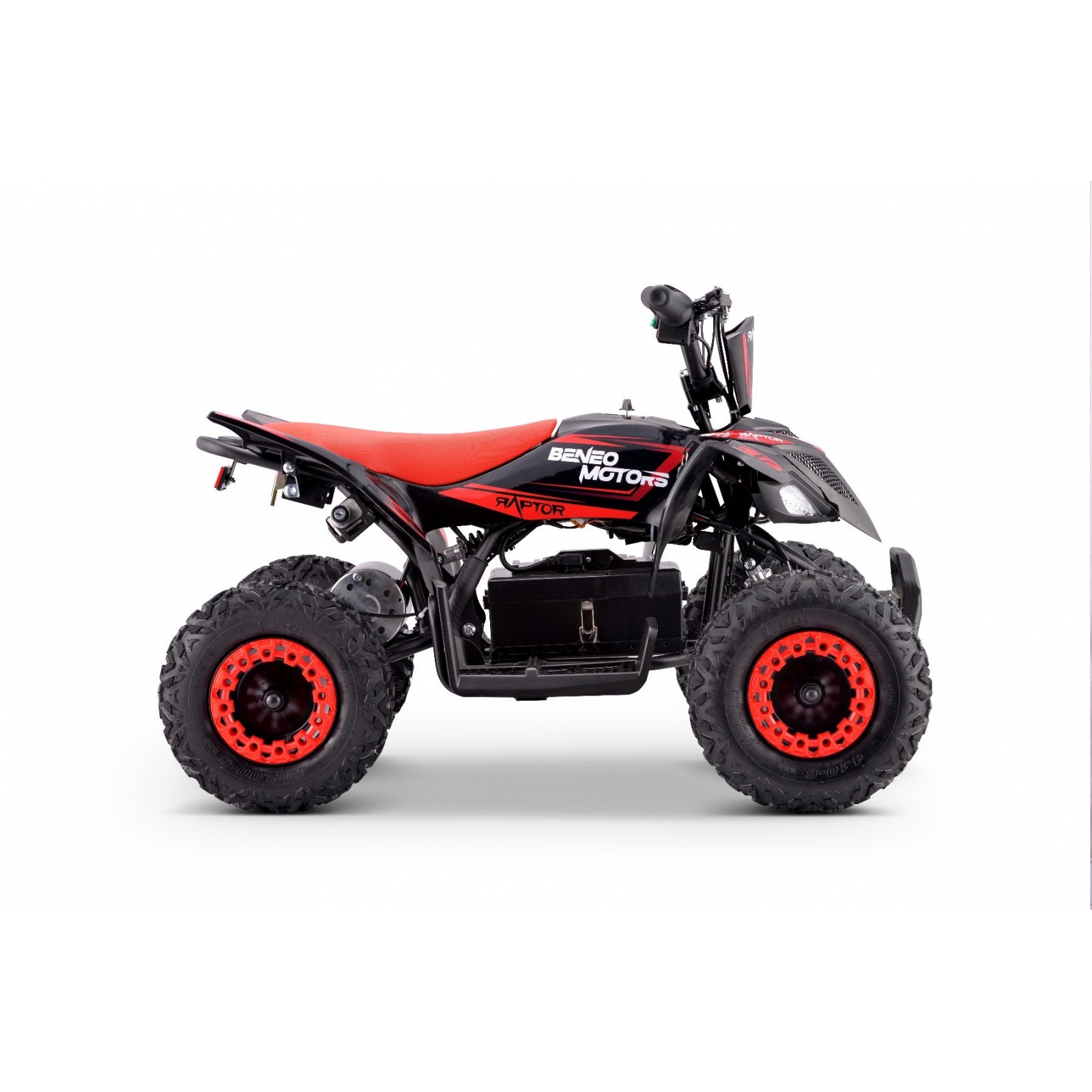 Predstavujeme Beneo Motors Raptor – Ideálnu štvorkolku pre deti od 3 do 6 rokov so všetkými bezpečnostnými prvkami: 3-polohový obmedzovač rýchlosti (5-15-22 km/h), kotúčové brzdy, bezpečnostný kryt reťaze.
