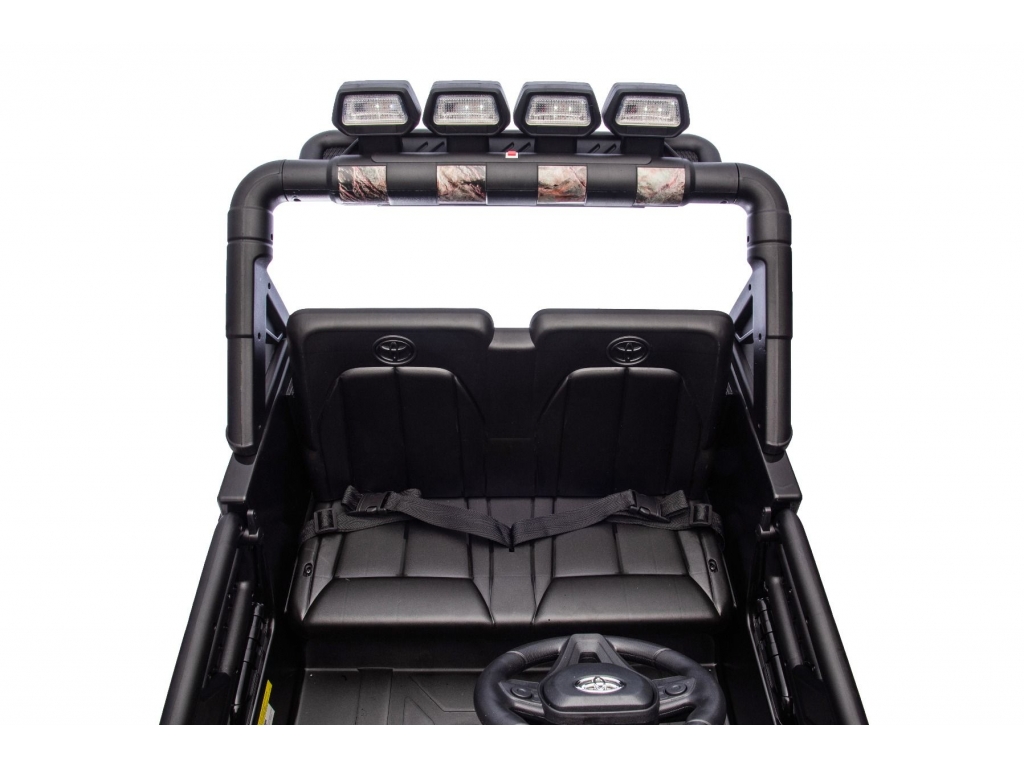 Pohon 4×4 s vysokým podvozkom – Pohon zabezpečujú štyri 55 W motory na všetkých kolesách, vďaka čomu je autíčko vhodné aj do terénu. Zadná náprava je odpružená, čo zvyšuje komfort jazdy.