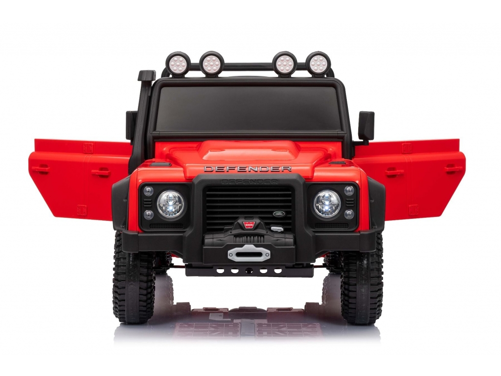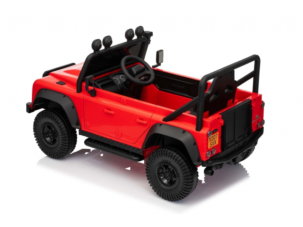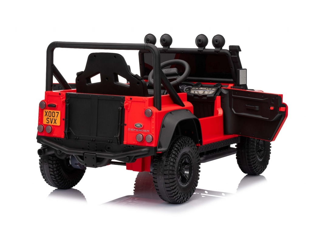 Beneo Elektrické autíčko Land Rover Defender 110 SVX 12V, červené, 4X4 pohon, LED svetlá, predné aj zadné odpruženie kolies, 2.4 GHz diaľkové ovládanie, USB/Aux Vstup, Bluetooth, Lítiová batéria, 4 X 25W motor, ORIGINÁL licencia