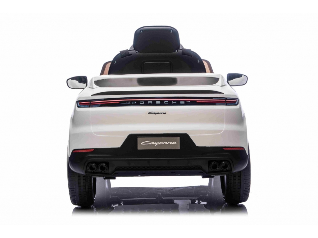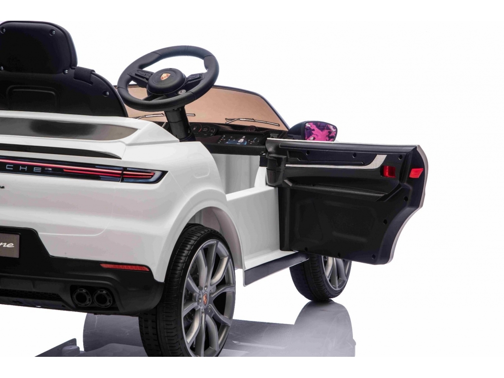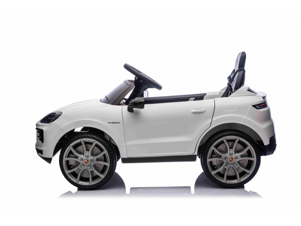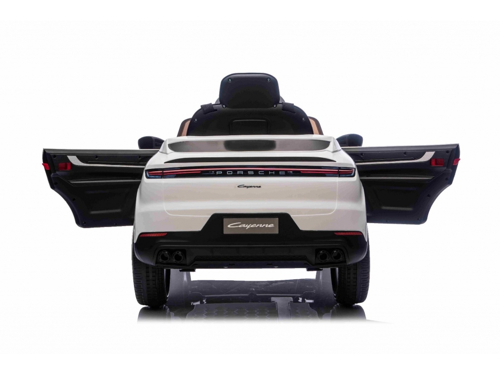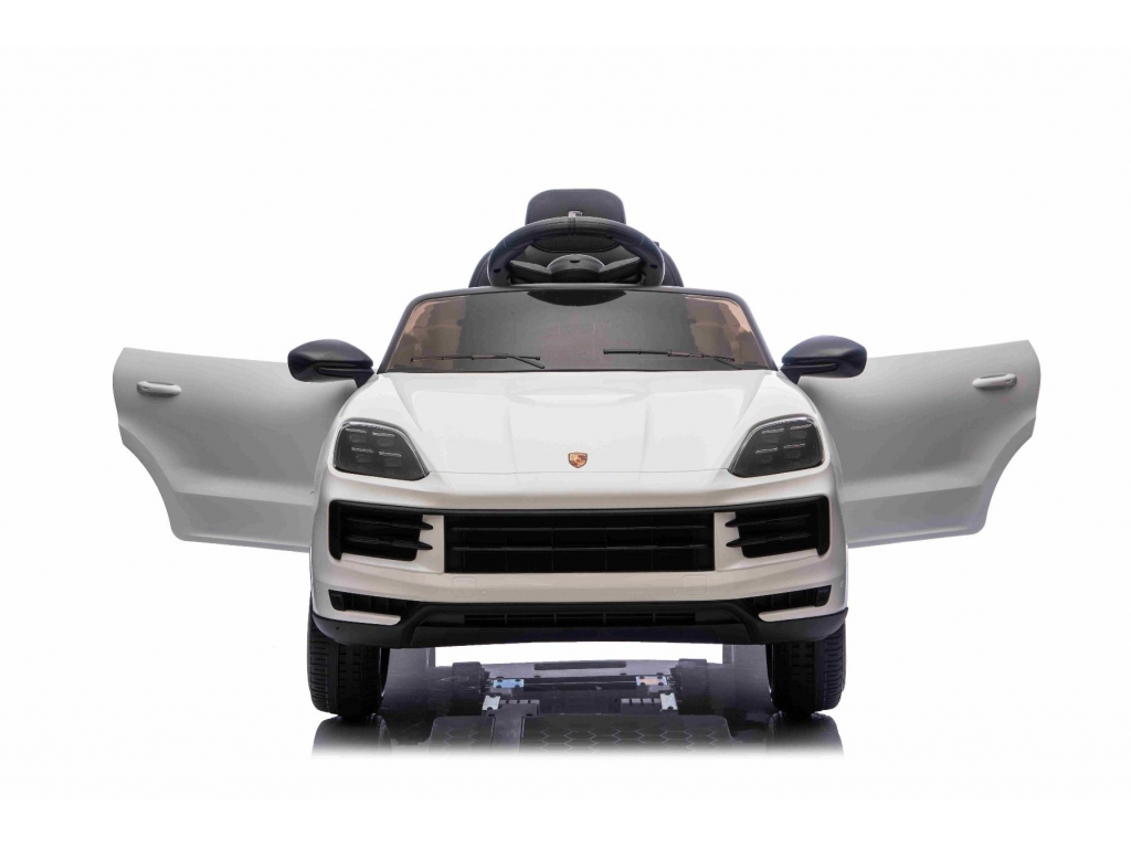 Elektrické autíčko Beneo Porsche Cayenne 12V s pohonom zadných kolies a licenciou (Jednomiestne), biele, Lítiová batéria, široké sedadlo, Odpružené nápravy, 2,4 GHz Diaľkový ovládač, MP3 prehrávač so vstupom USB/AUX, LED svetlá