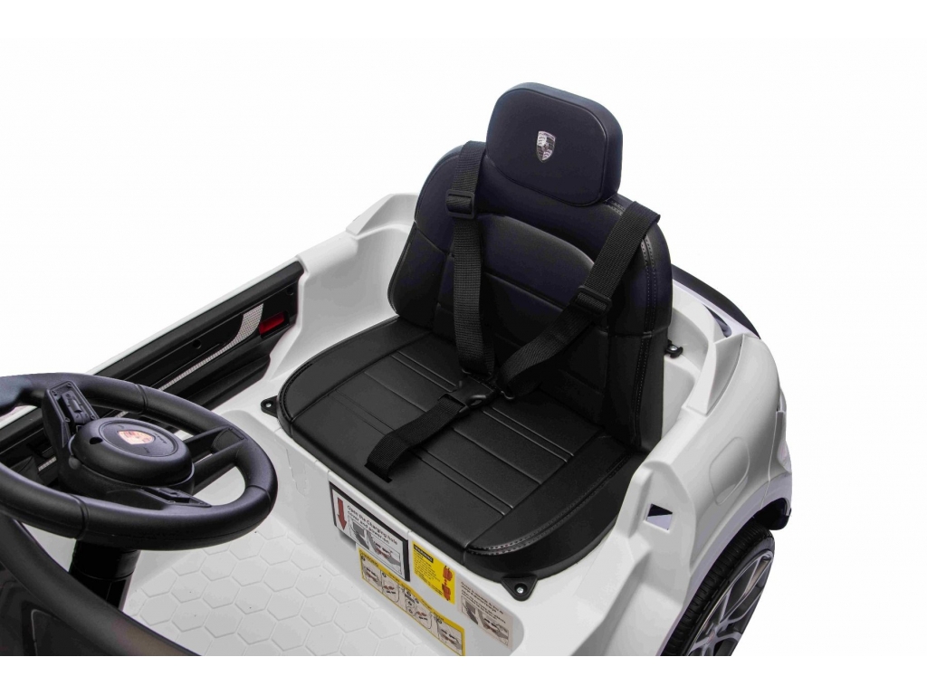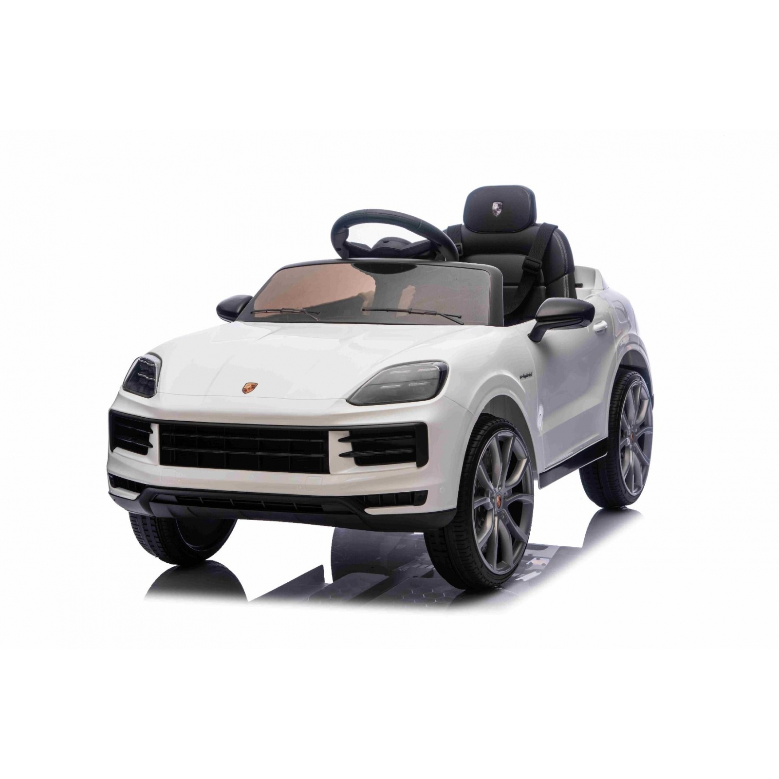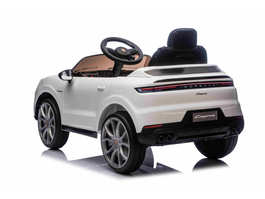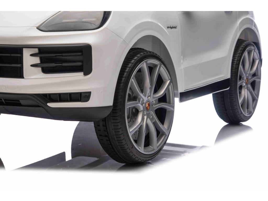 Elektrické autíčko Beneo Porsche Cayenne 12V s pohonom zadných kolies a licenciou (Jednomiestne), biele, Lítiová batéria, široké sedadlo, Odpružené nápravy, 2,4 GHz Diaľkový ovládač, MP3 prehrávač so vstupom USB/AUX, LED svetlá