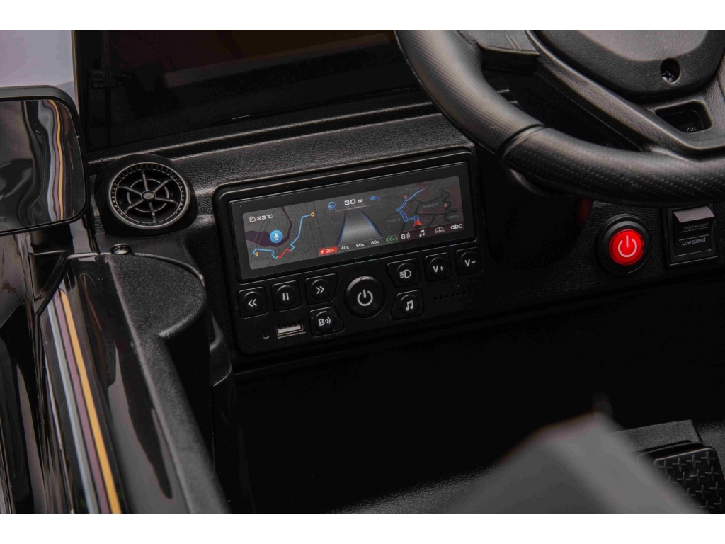 Autíčko je vybavené 2,4 GHz diaľkovým ovládaním novej generácie s osvetleným štartovacím spínačom na jedno tlačidlo. O bezpečnosť sa stará núdzová brzda na ovládači, ktorá v prípade potreby okamžite deaktivuje všetky funkcie, a tak rodič získava plnú kontrolu nad jazdou. Nechýba ani bezpečnostný pás, ktorý poskytuje istotu pri jazde.