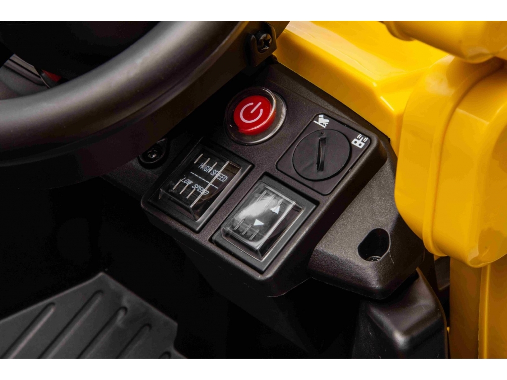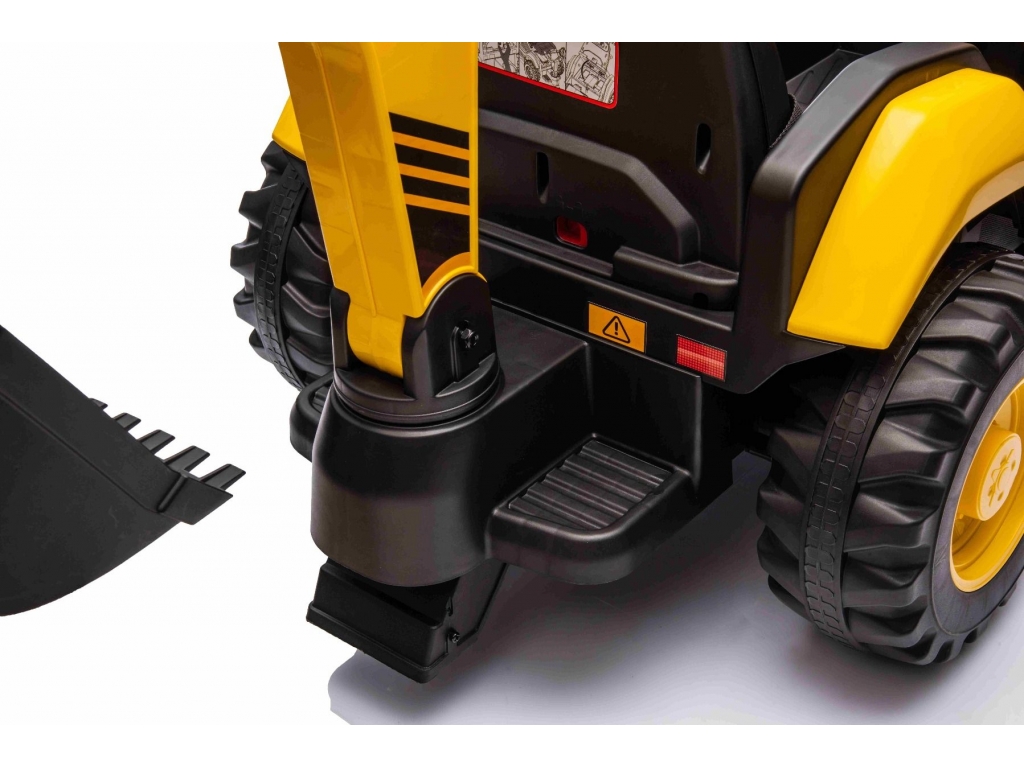 Zadný pohon zabezpečujú dve 30W motory na zadných kolesách vďaka čomu je báger vhodný aj do mierneho terénu. K dispozícii je aj MP3 prehrávač so vstupom USB a prepínač rýchlosti.