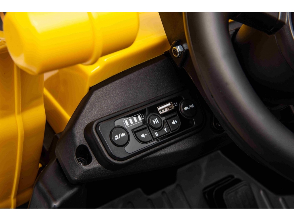 Zadný pohon zabezpečujú dve 30W motory na zadných kolesách vďaka čomu je báger vhodný aj do mierneho terénu. K dispozícii je aj MP3 prehrávač so vstupom USB a prepínač rýchlosti.