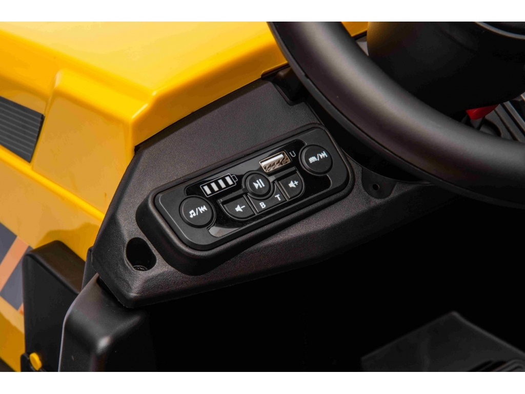 Zadný pohon zabezpečujú dve 30W motory na zadných kolesách vďaka čomu je báger vhodný aj do mierneho terénu. K dispozícii je aj MP3 prehrávač so vstupom USB a prepínač rýchlosti.